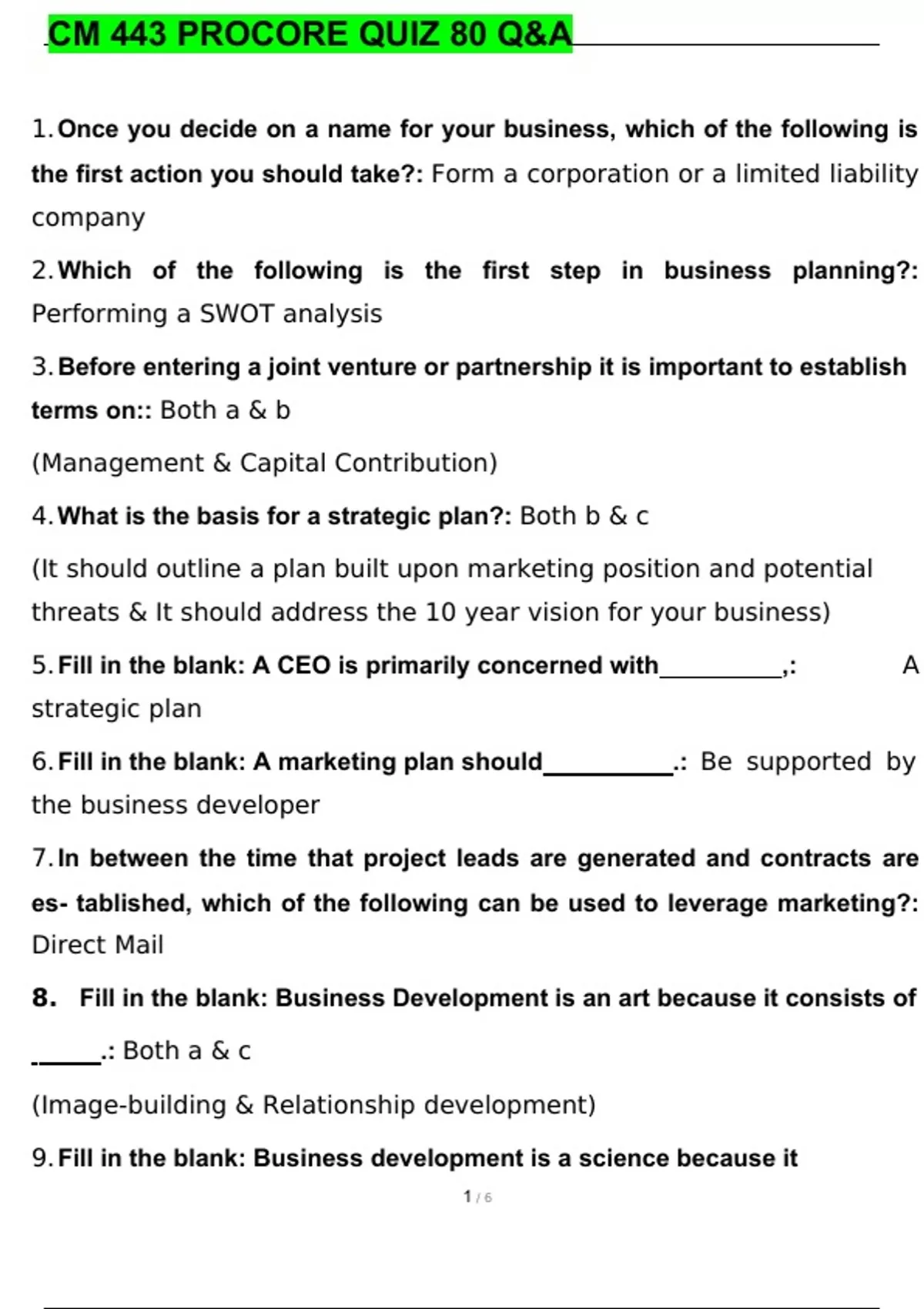 CM 443 PROCORE EXAM QUIZ 80 QUESTIONS AND ANSWERS GRADED A+