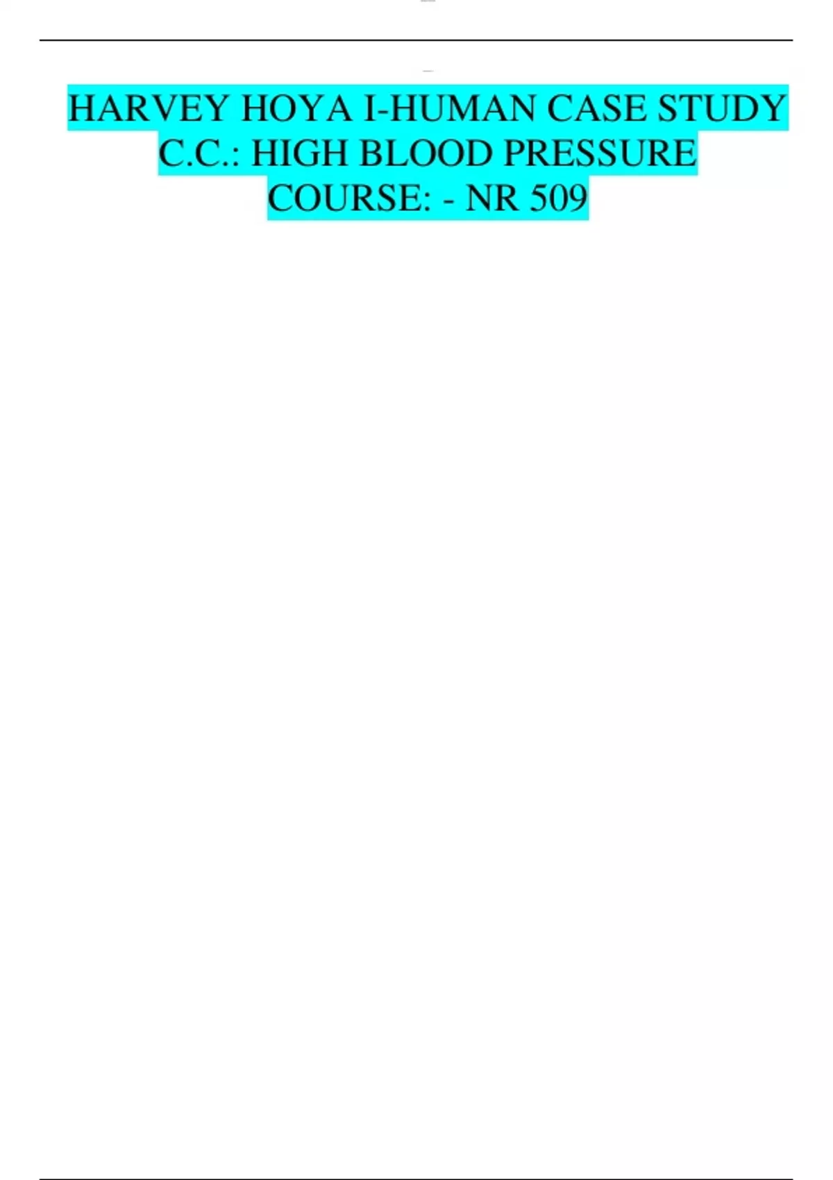 HARVEY HOYA I-HUMAN CASE STUDY C.C.: HIGH BLOOD PRESSURE COURSE: - NR 509