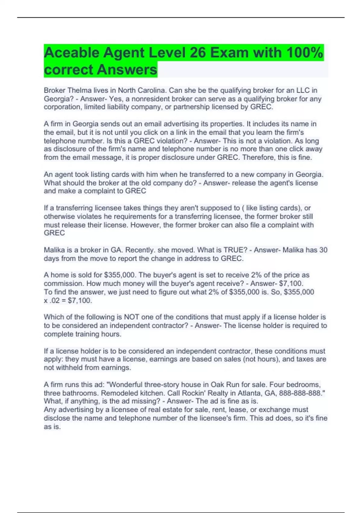 Aceable Agent Level 26 Exam with 100% correct Answers