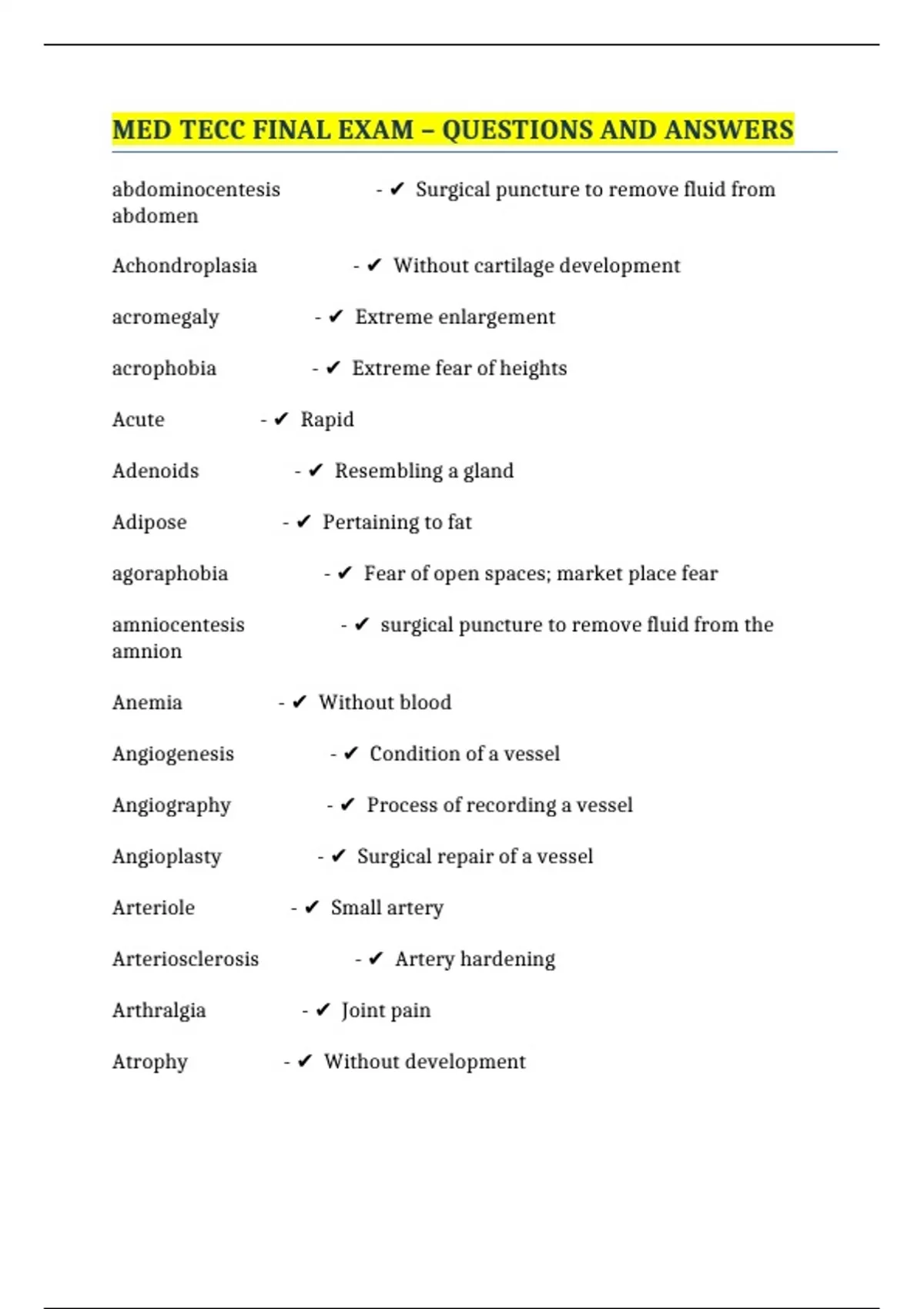 MED TECC FINAL EXAM – QUESTIONS AND ANSWERS