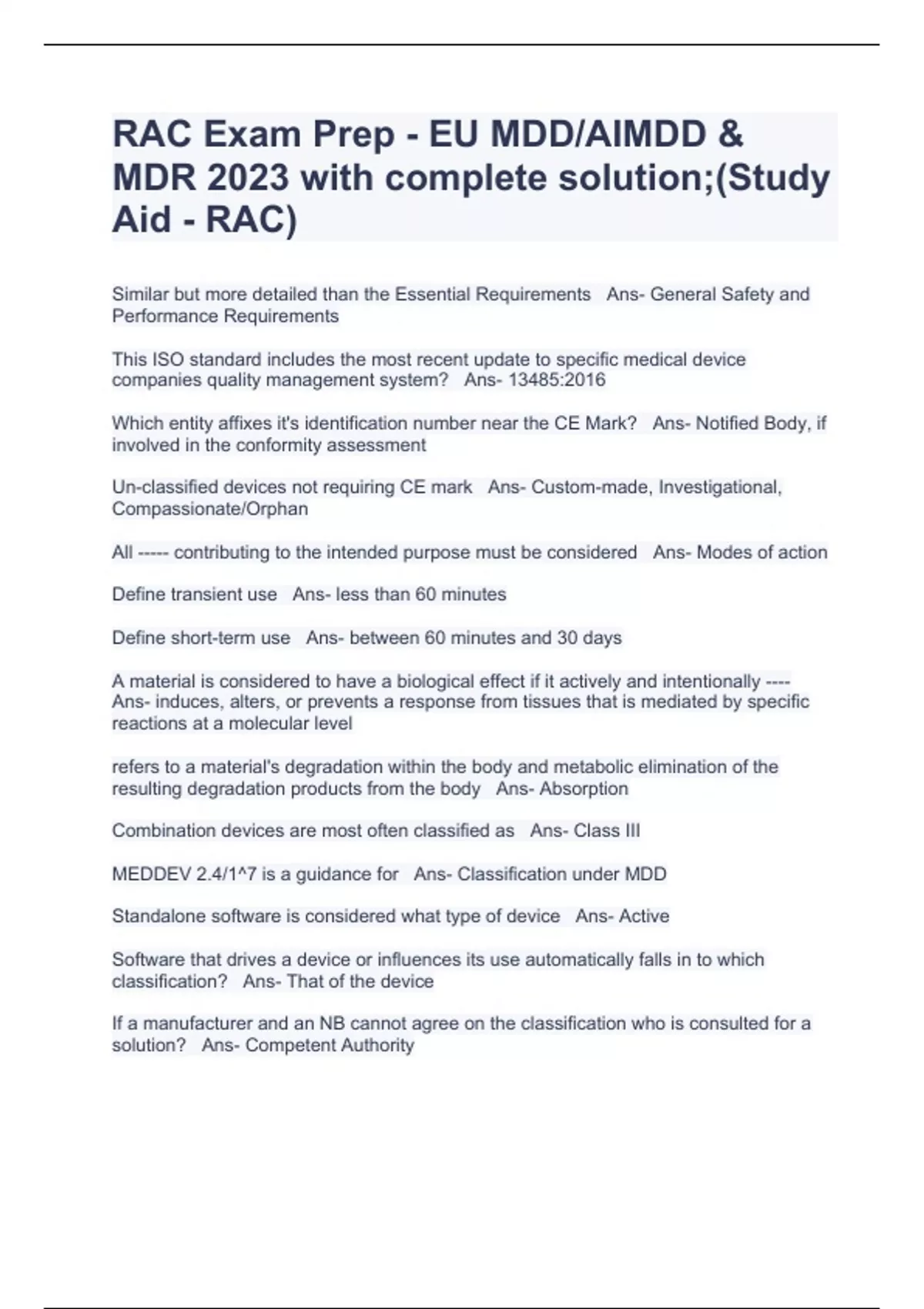 RAC Exam Prep - EU MDD/AIMDD & MDR 2023 with complete solution;(Study Aid - RAC)