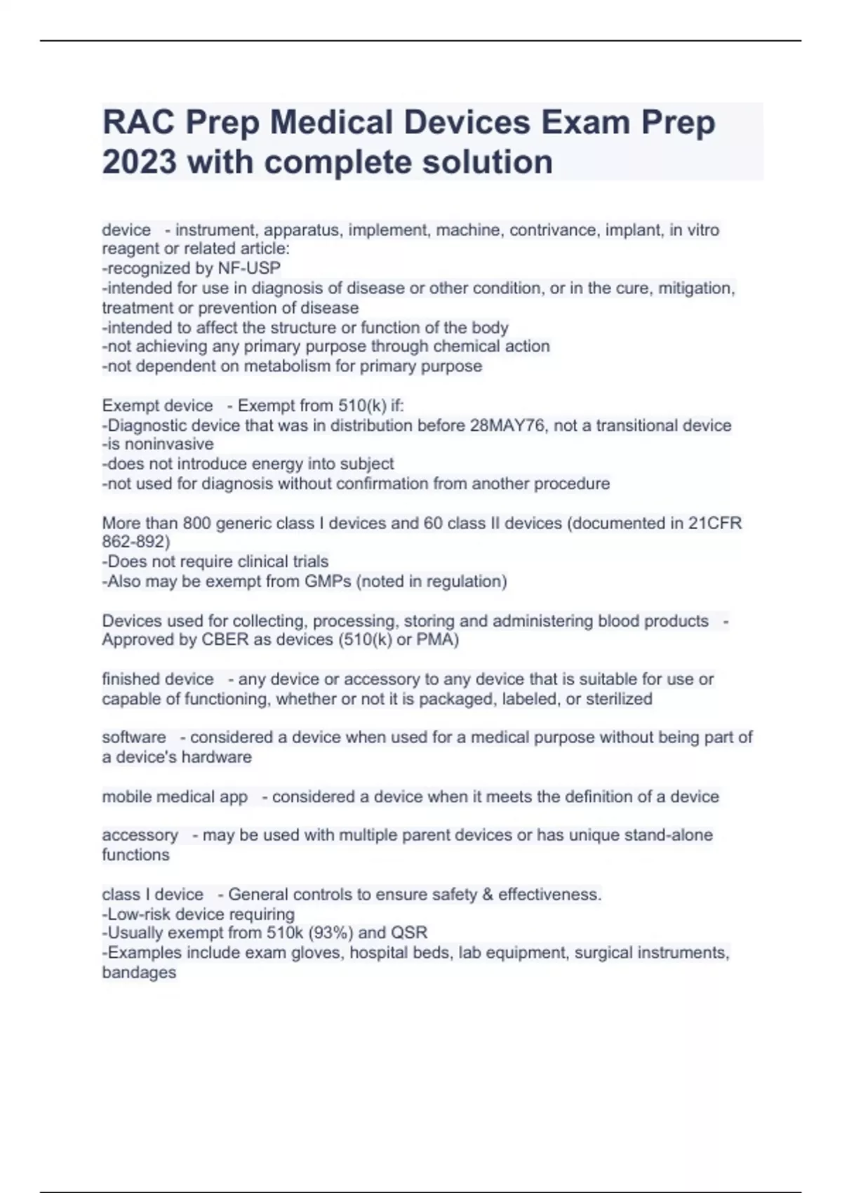 RAC Prep Medical Devices Exam Prep 2023 with complete solution