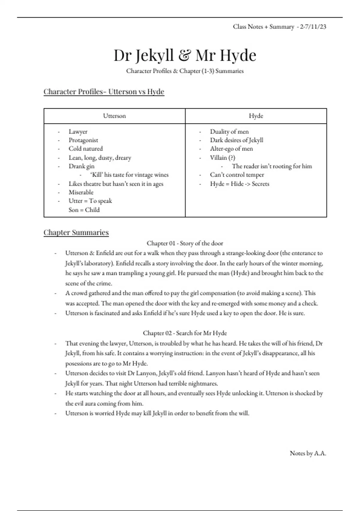 Character Profiles- Utterson vs Hyde