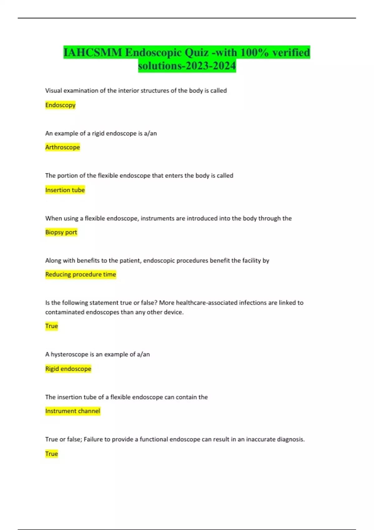 IAHCSMM Endoscopic Quiz -with 100% verified solutions-