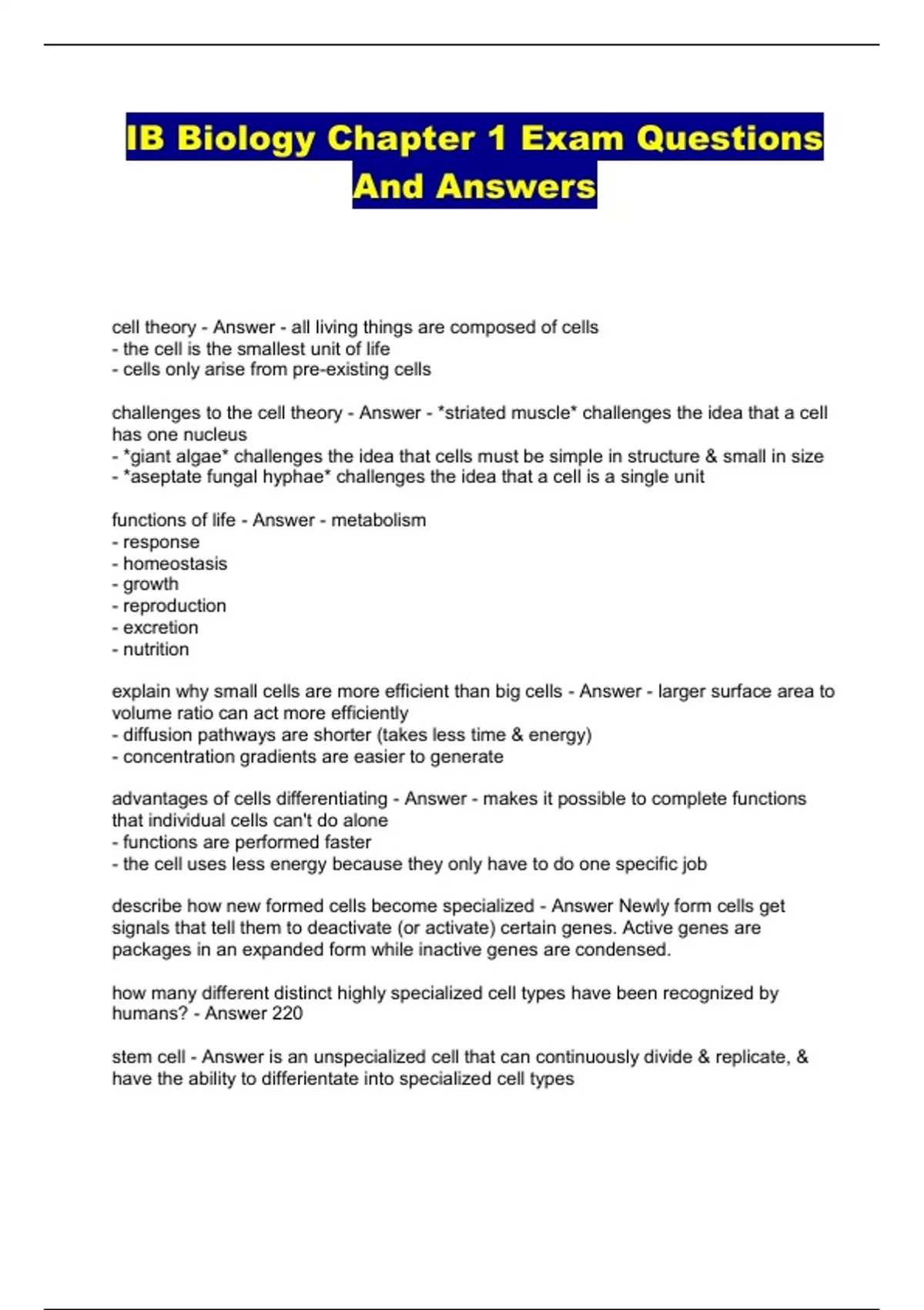 IB Biology Chapter 1 Exam Questions And Answers...