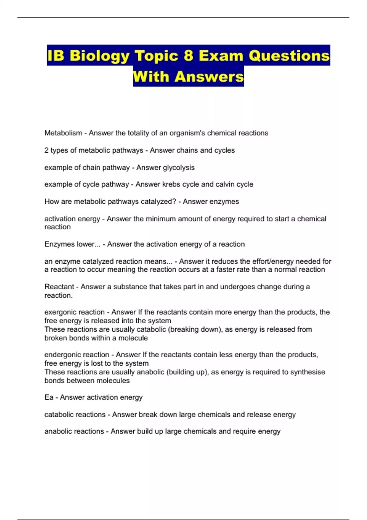 ib biology topic 8 exam questions with answers