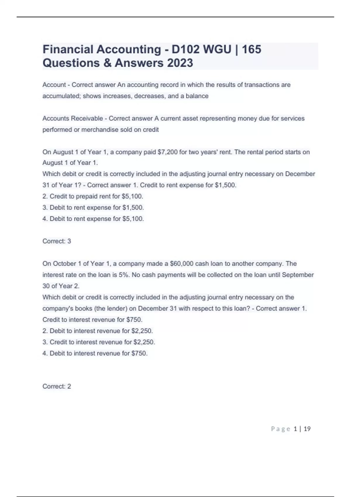 Financial Accounting - D102 WGU | 165 Questions & Answers 2023