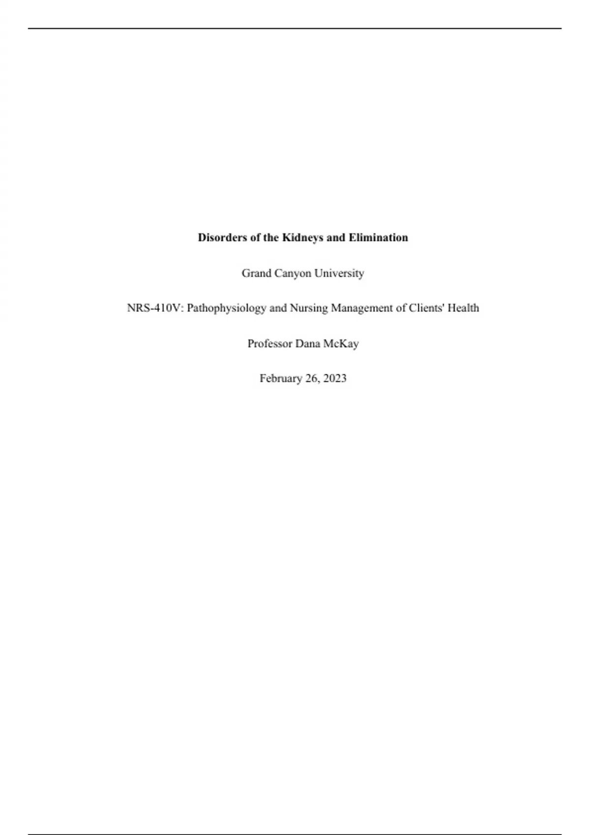 NRS 410V Topic 3 Assignment Case Study Mr. C - Disorders of the Kidneys and Elimination