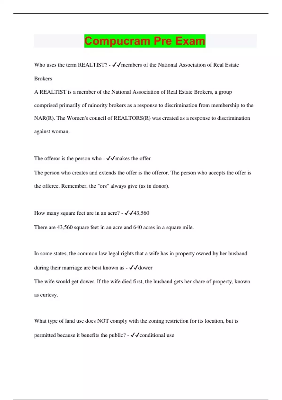 Compucram Pre Exam | 40 Questions with 100% Correct Answers | Updated & Verified