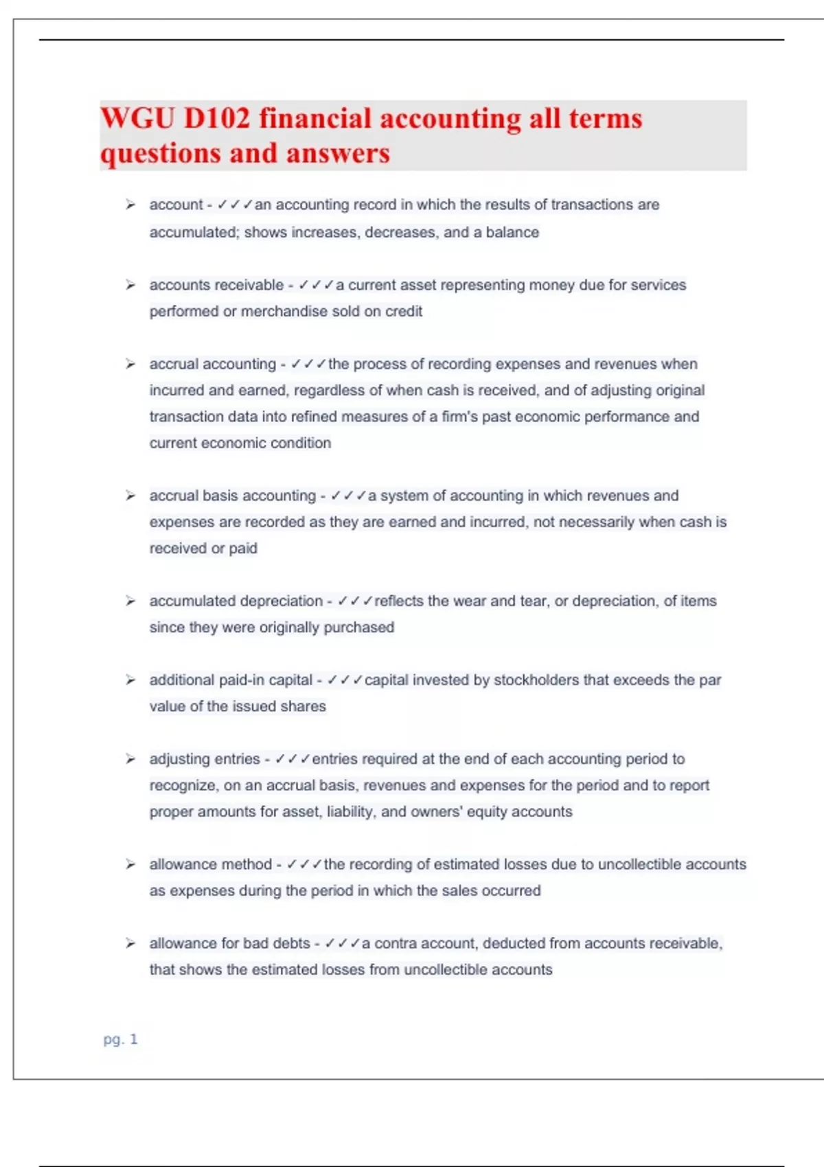 WGU D102 financial accounting all terms questions and answers WGU D102 financial accounting all terms questions and answers