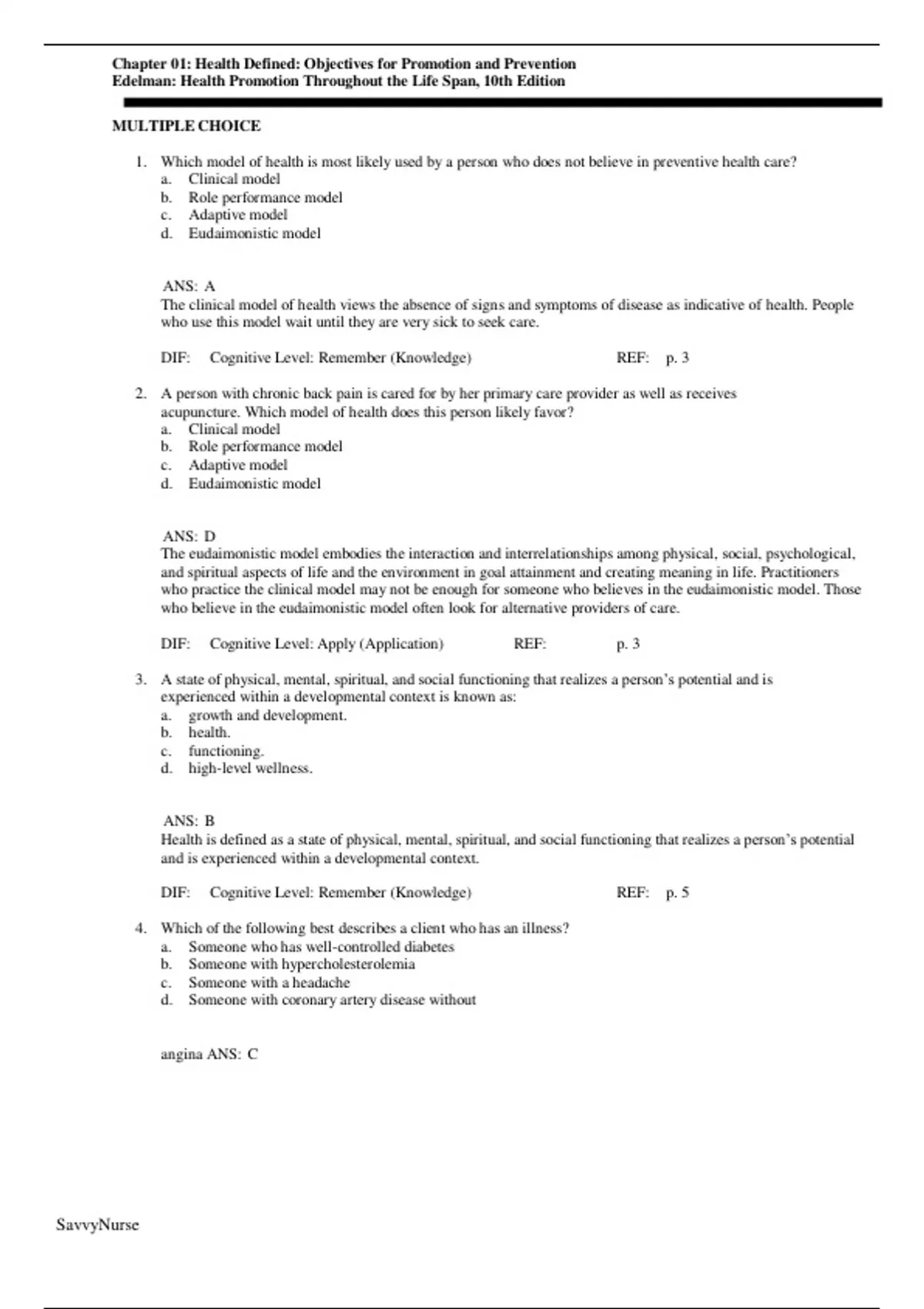 TEST BANK FOR Health Promotion Throughout the Life Span 10th Edition Chapter 1-25 by Carole Lium Edelman Test Bank: Edelman Health Promotion Throughout the Life Span, 8th Edition Chapter 1-25