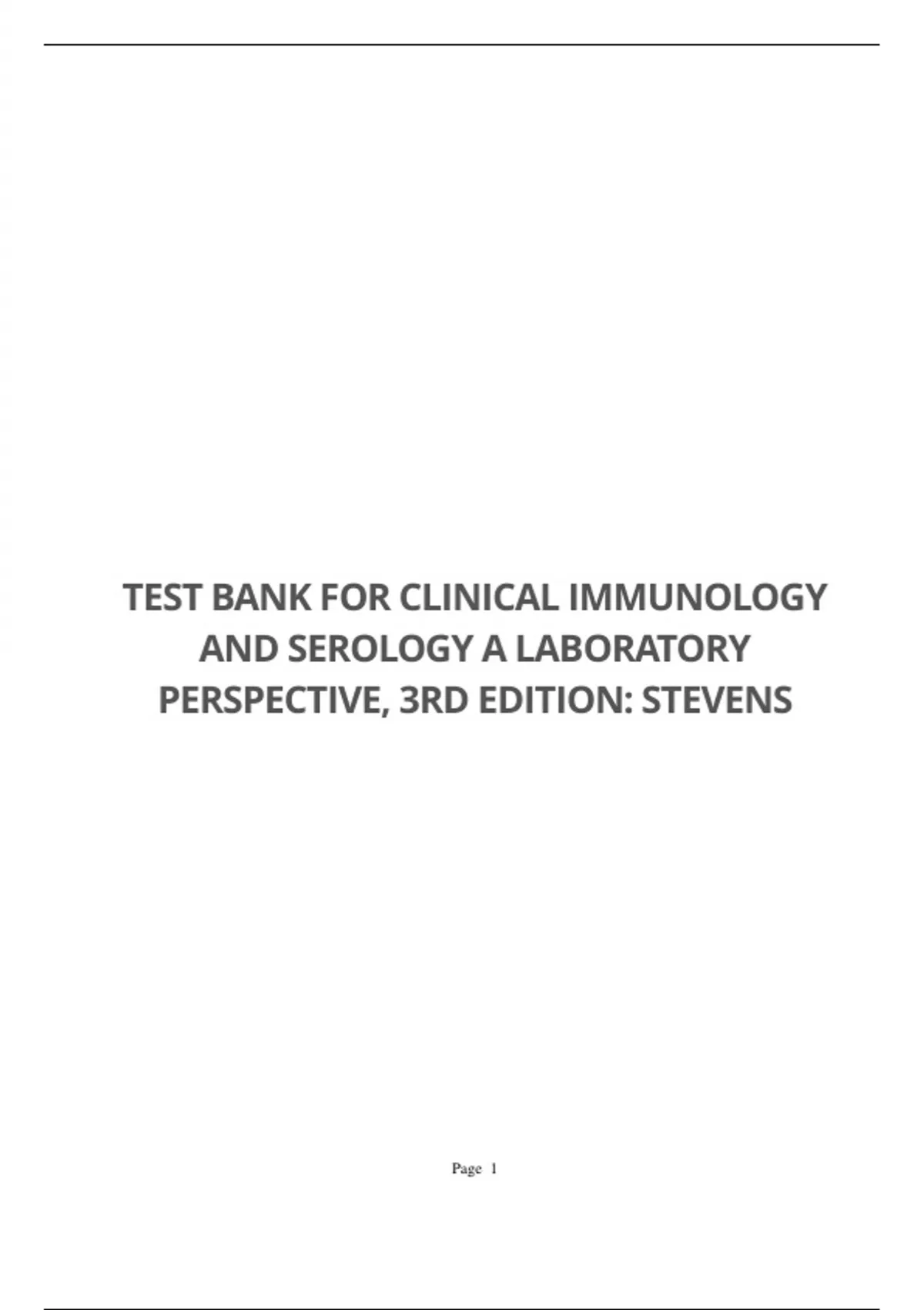 TEST BANK FOR CLINICAL IMMUNOLOGY AND SEROLOGY A LABORATORY PERSPECTIVE, 3RD EDITION: STEVENS