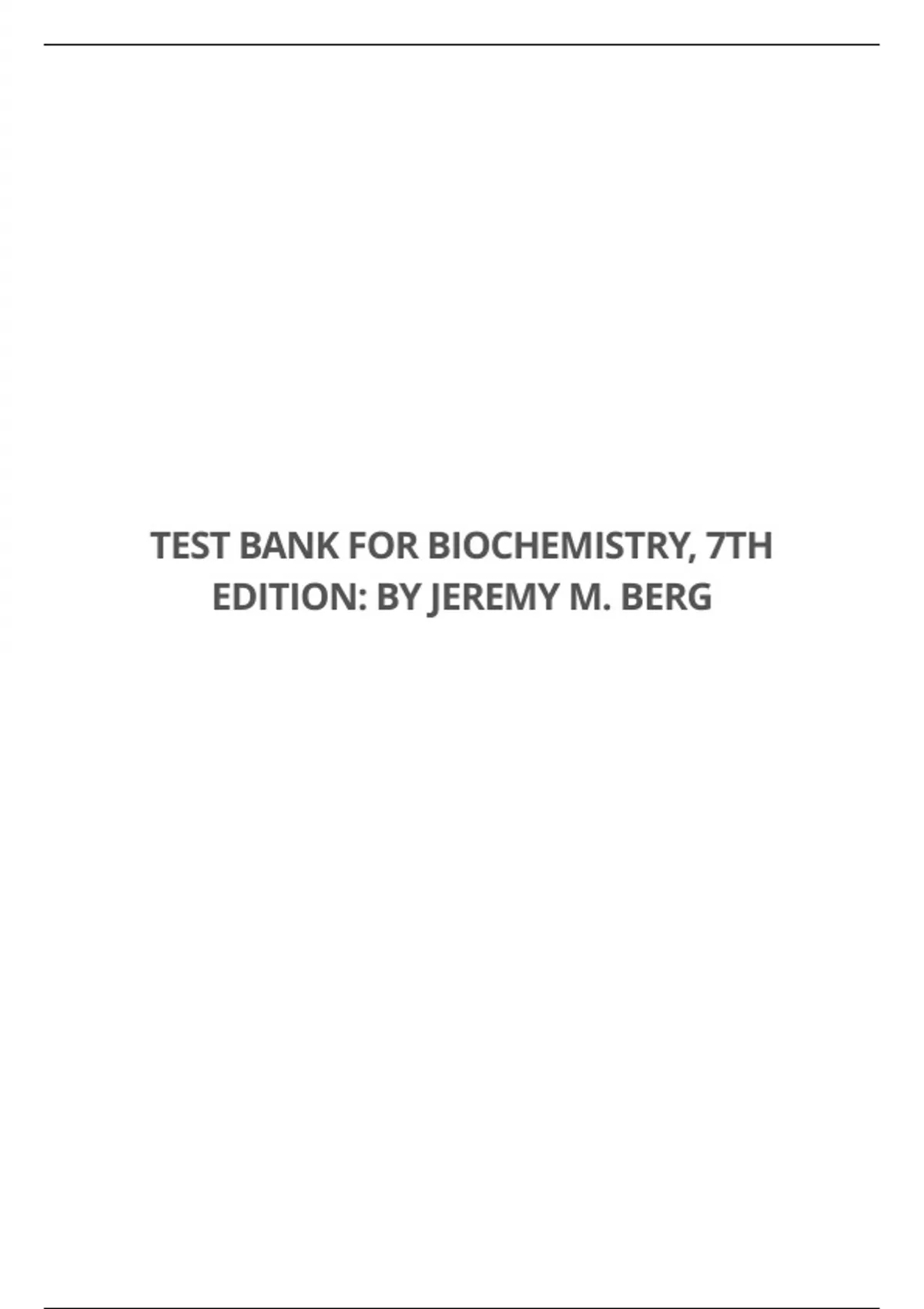 TEST BANK FOR BIOCHEMISTRY, 7TH EDITION: BY JEREMY M. BERG