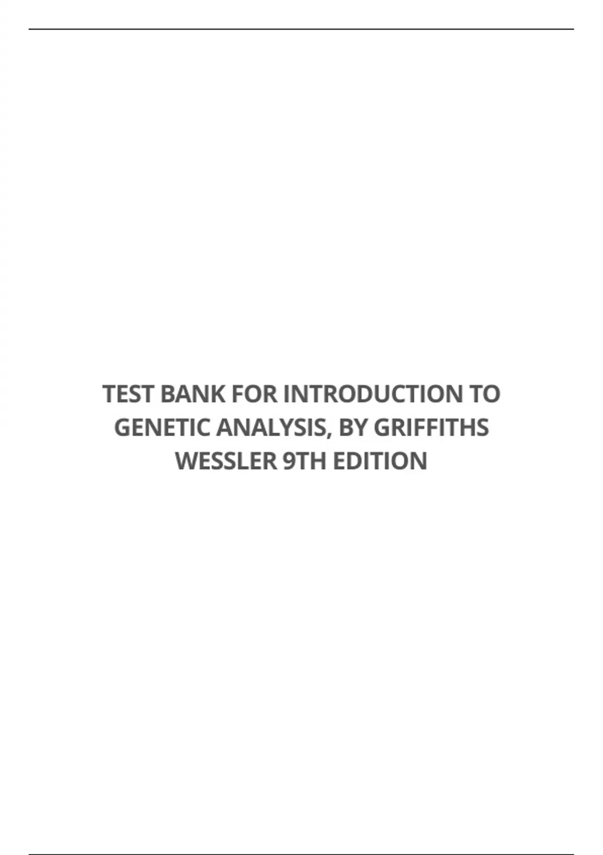 TEST BANK FOR INTRODUCTION TO GENETIC ANALYSIS, 9TH EDITION BY GRIFFITHS WESSLER