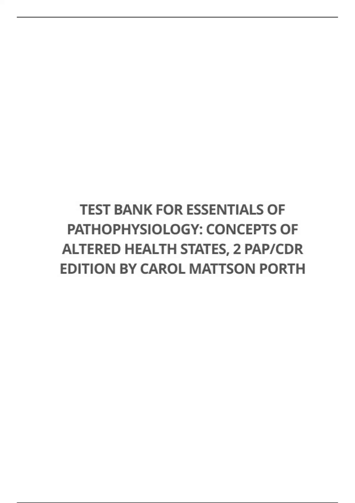 TEST BANK FOR ESSENTIALS OF PATHOPHYSIOLOGY: CONCEPTS OF ALTERED HEALTH STATES, 2 PAP/CDR EDITION BY CAROL MATTSON PORTH