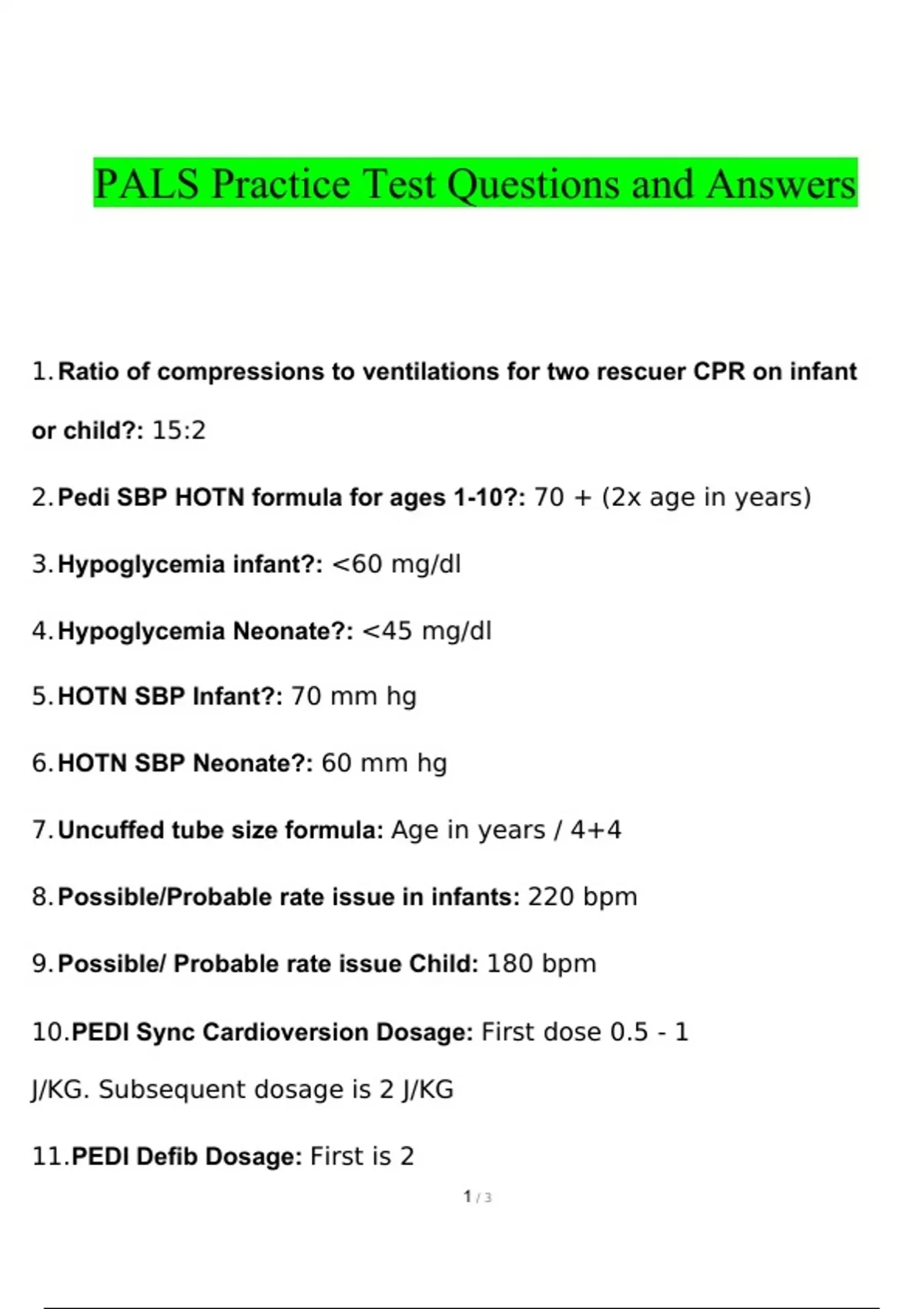 PALS Practice Test questions and answers} Latest (verified answers) PALS Practice Test questions and answers} Latest (verified answers)