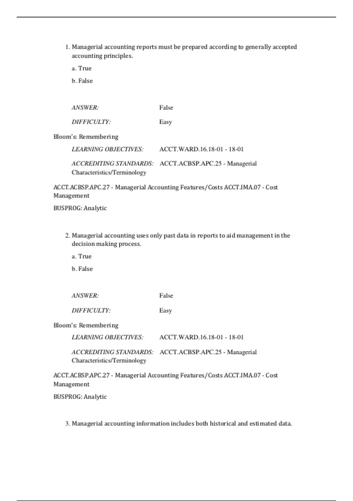 3. Managerial accounting information includes both historical and estimated data.