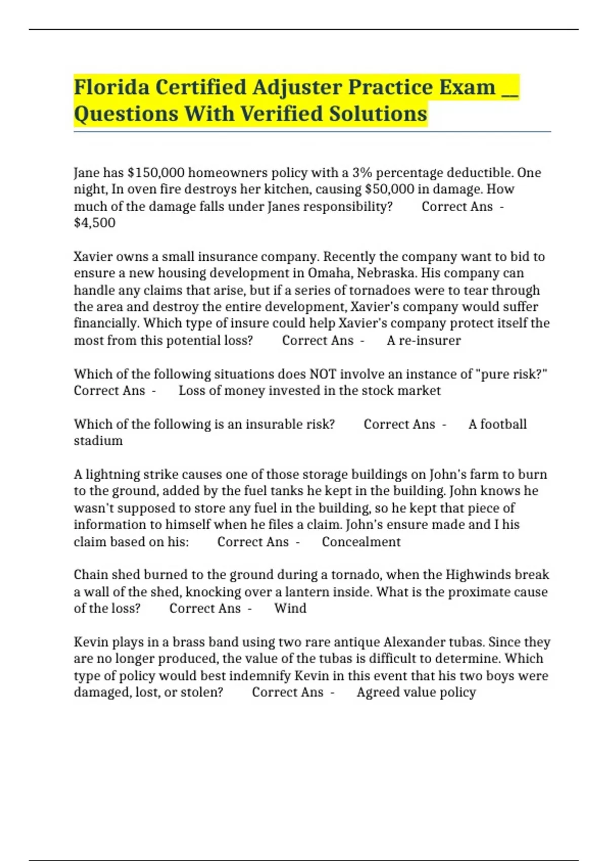 claim. Stacy's house was destroyed in a house fire and it will cost $185,000 to