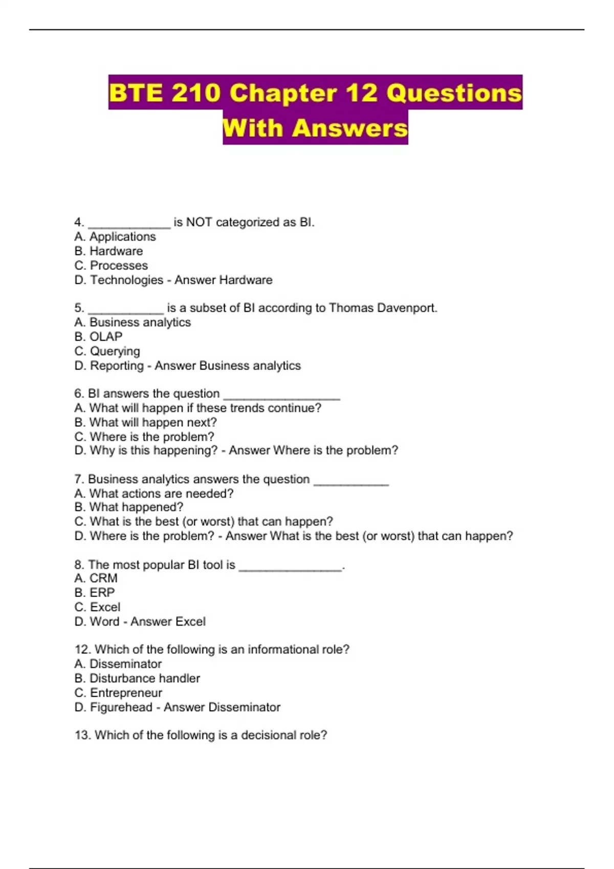 ALL BTE 210 PACKAGED EXAMS QUESTIONS WITH ANSWERS GRADED A+