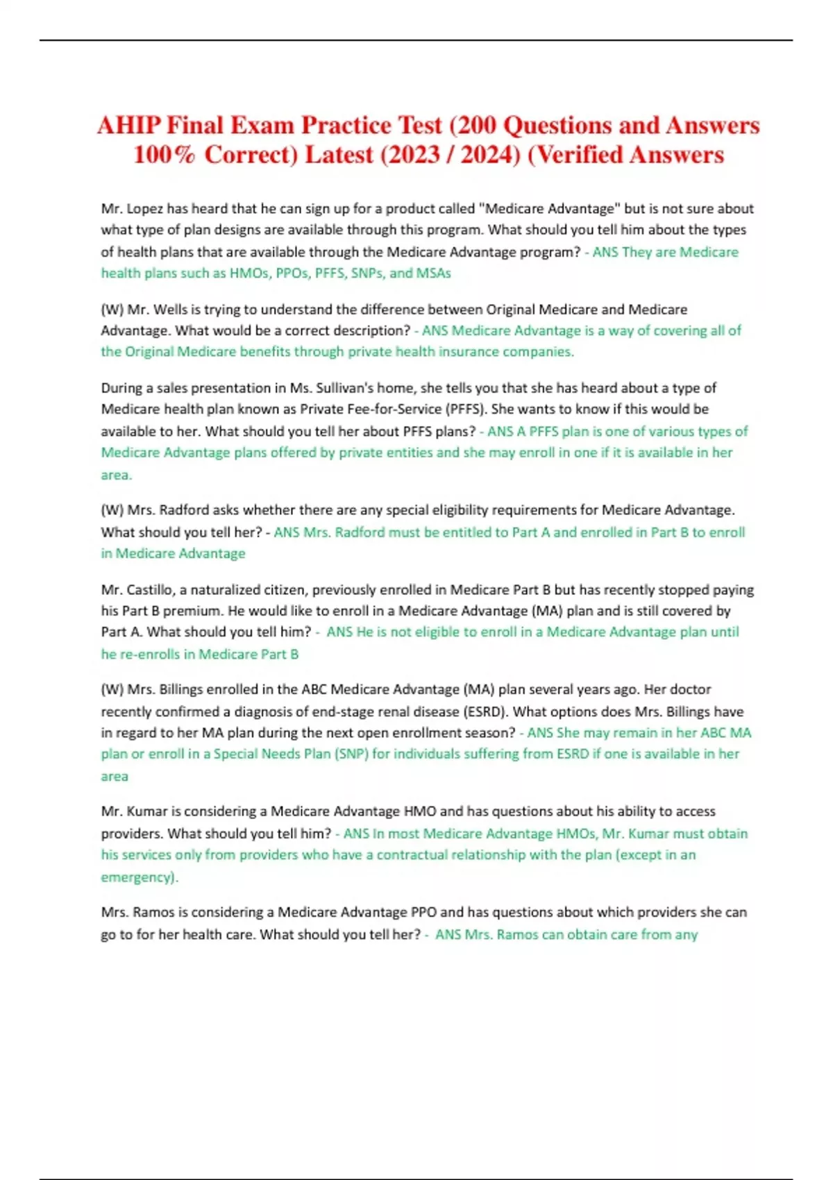 AHIP Final Exam Practice Test (200 Questions and Answers 100% Correct) Latest (2023 / 2024) (Verified Answers