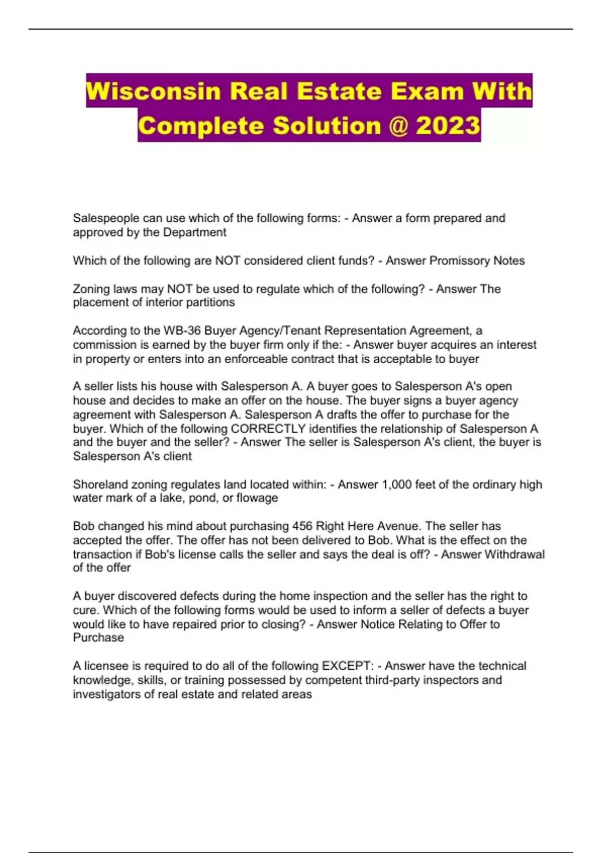 Wisconsin Real Estate Exam With Complete Solution @ 2023...