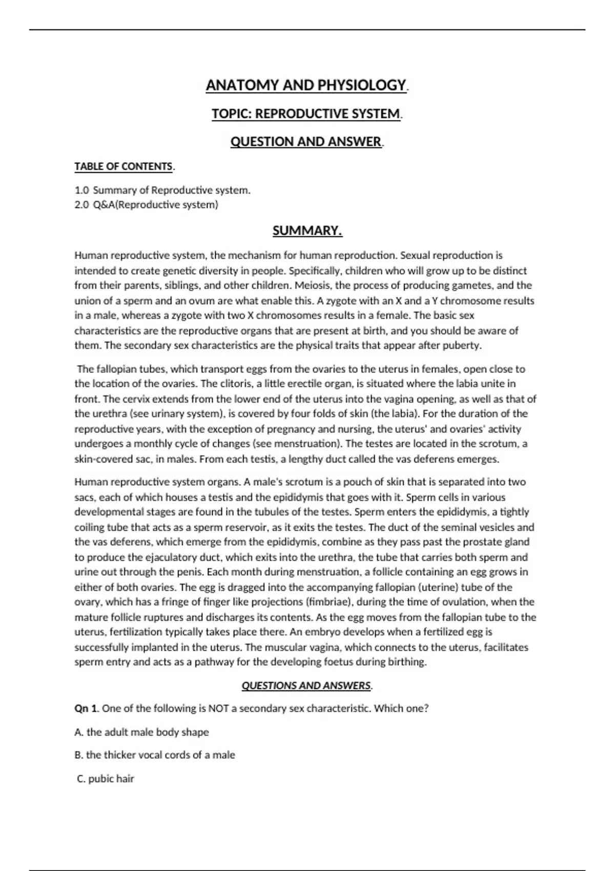 This is a well crafted set of questions and highly researched answers, enabling one an easy time to understand the reproductive system in one seating. I have included a brief summary of the topic thus providing a learning map for the learner.