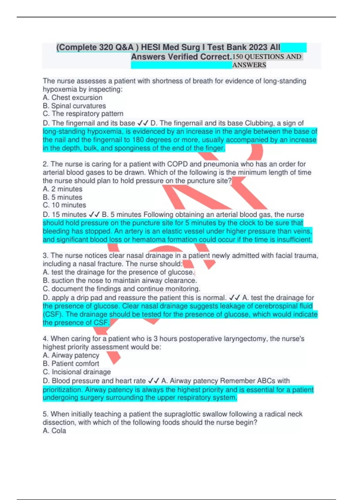 (Complete 320 Q&A ) HESI Med Surg I Test Bank 2023 All Answers Verified Correct.150 QUESTIONS AND ANSWERS