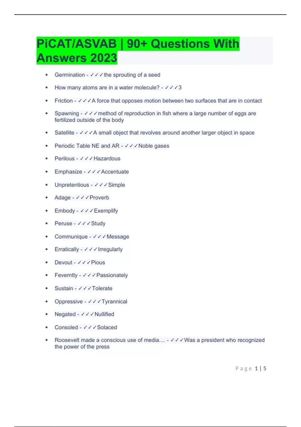 PiCAT/ASVAB | 90+ Questions With Answers 2023PiCAT/ASVAB | 90+ Questions With Answers 2023