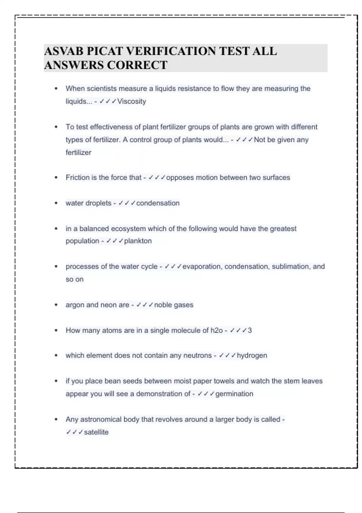 ASVAB PICAT VERIFICATION TEST ALL ANSWERS CORRECTASVAB PICAT VERIFICATION TEST ALL ANSWERS CORRECT