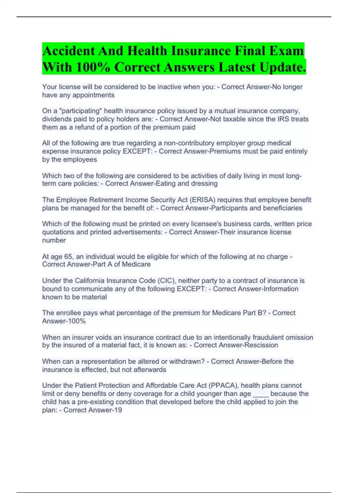Accident And Health Insurance Final Exam With 100% Correct Answers Latest Update.