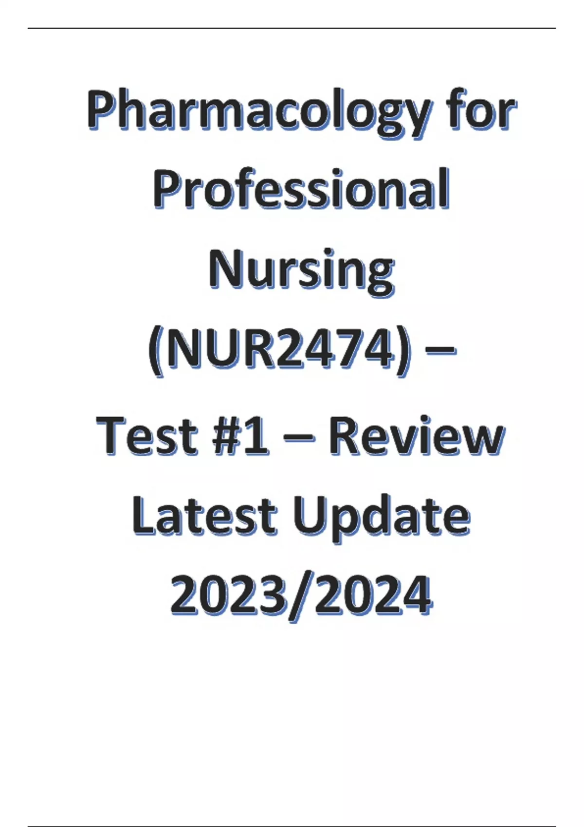 Pharmacology for Professional Nursing (NUR2474) - Test #1 - Review Latest Update 2023/2024