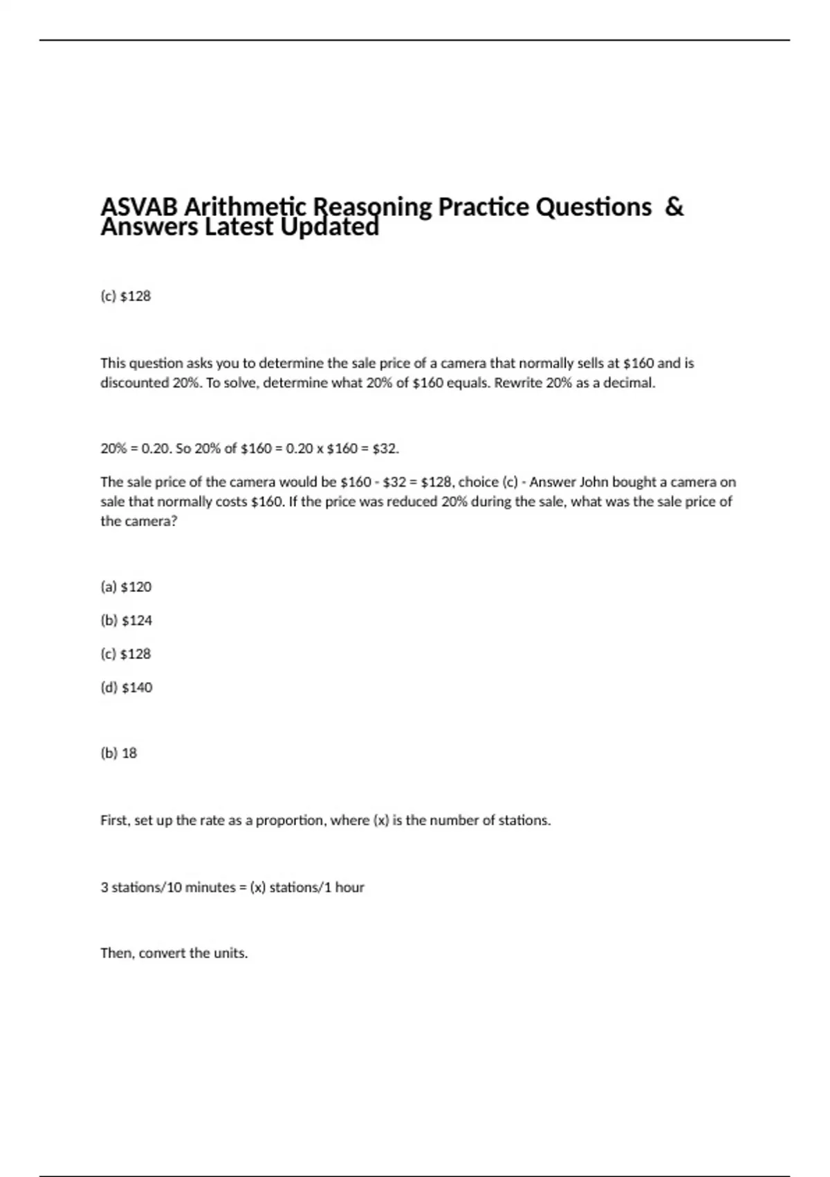 ASVAB Arithmetic Reasoning Practice Questions & Answers Latest Updated