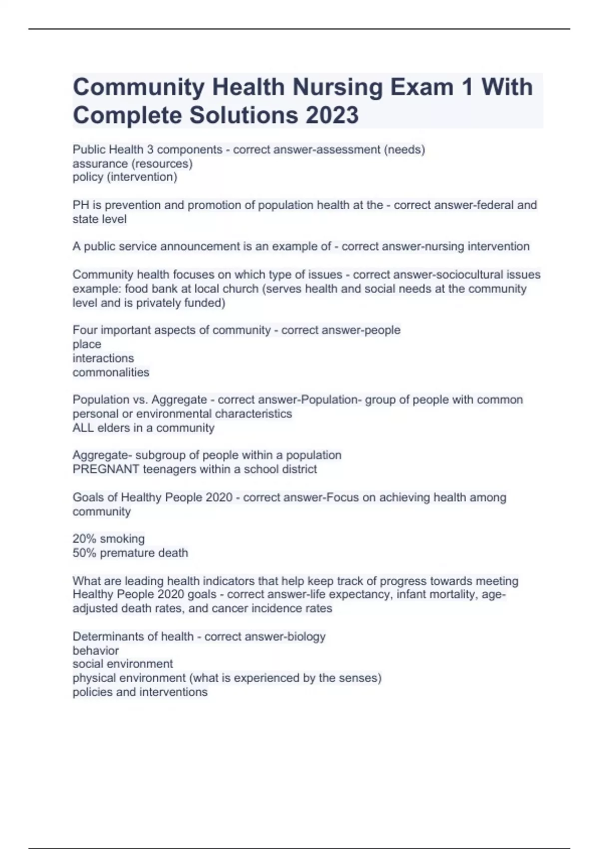 Community Health Nursing Exam 1 With Complete Solutions 2023