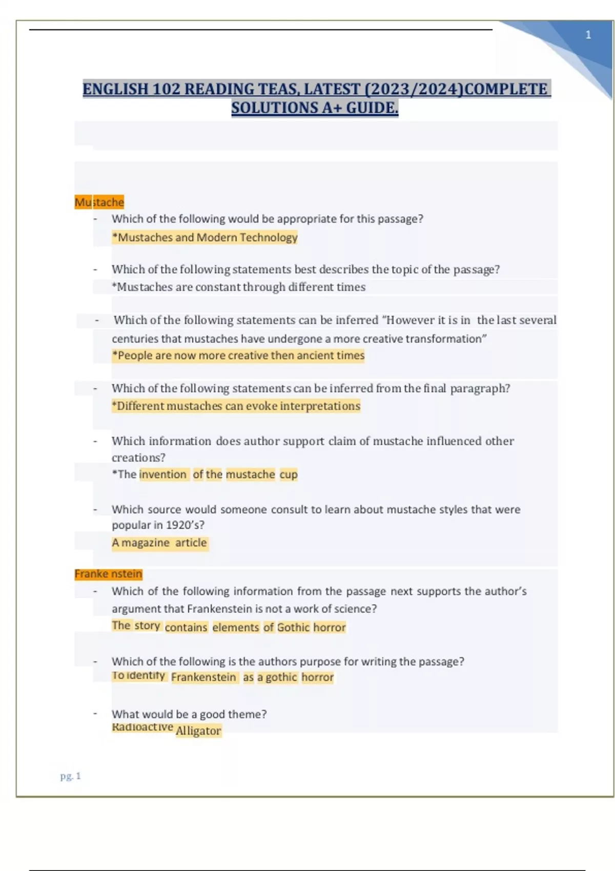 ENGLISH 102 READING TEAS, LATEST (2023/2024) COMPLETE SOLUTIONS A+ GUIDE