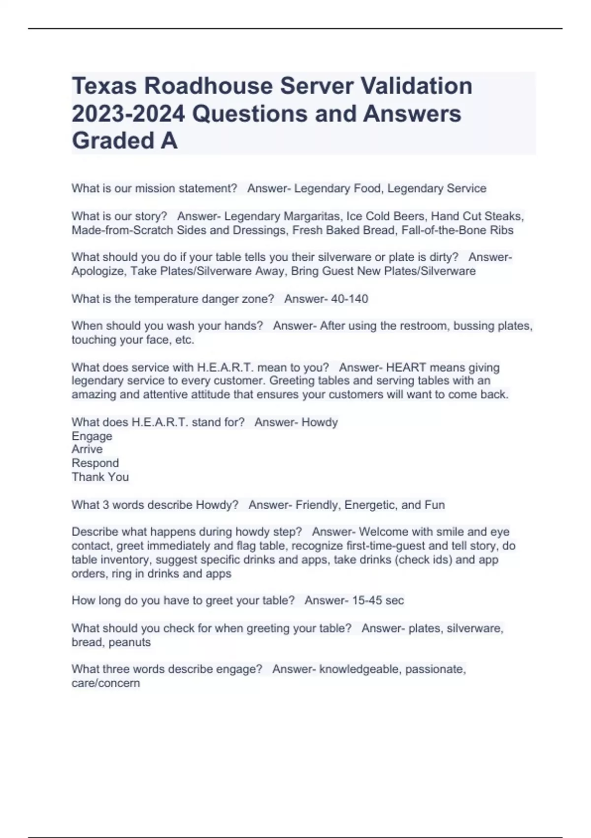 Texas Roadhouse Server Validation Questions and Answers Graded A