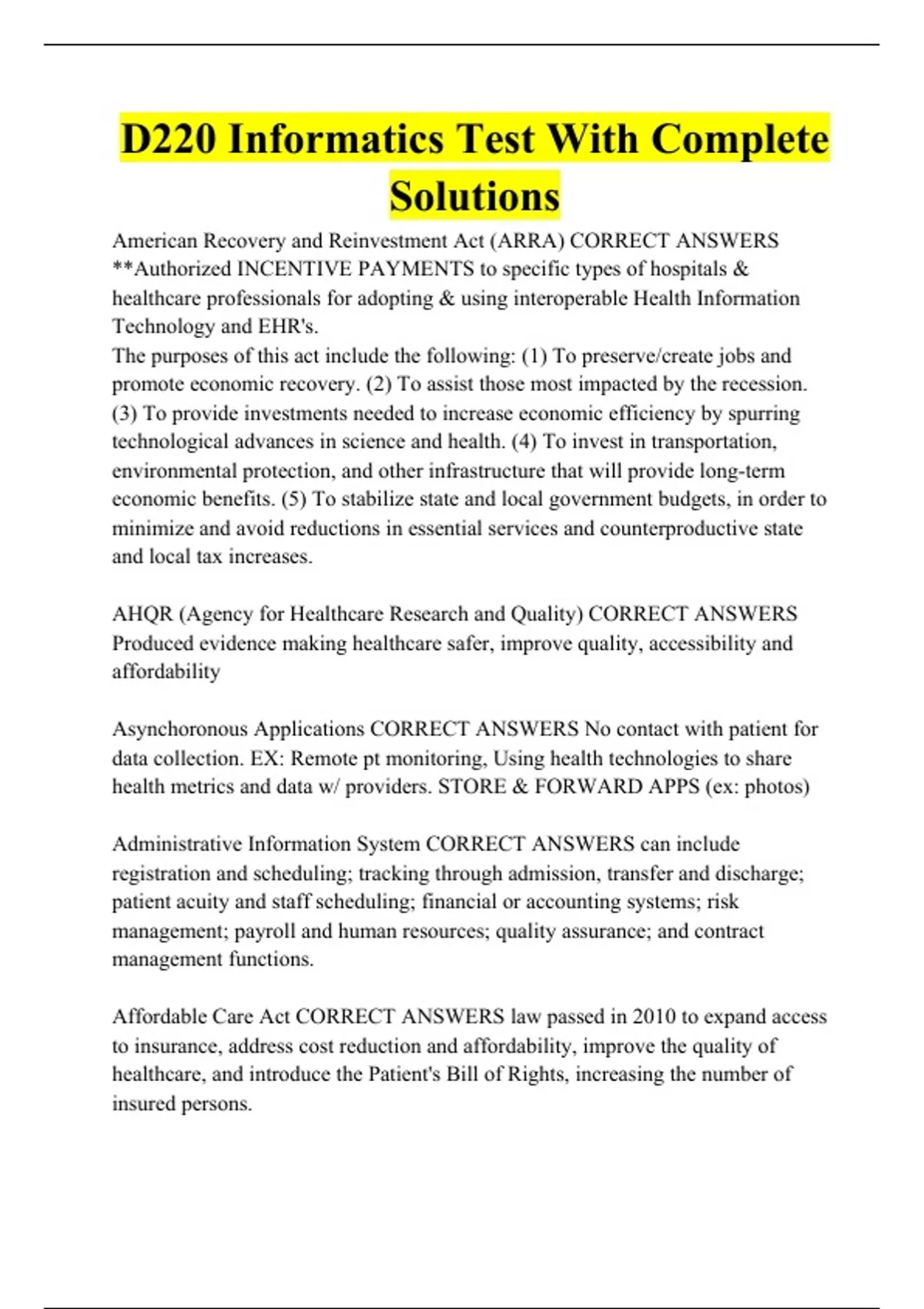 D220 Informatics Test With Complete Solutions