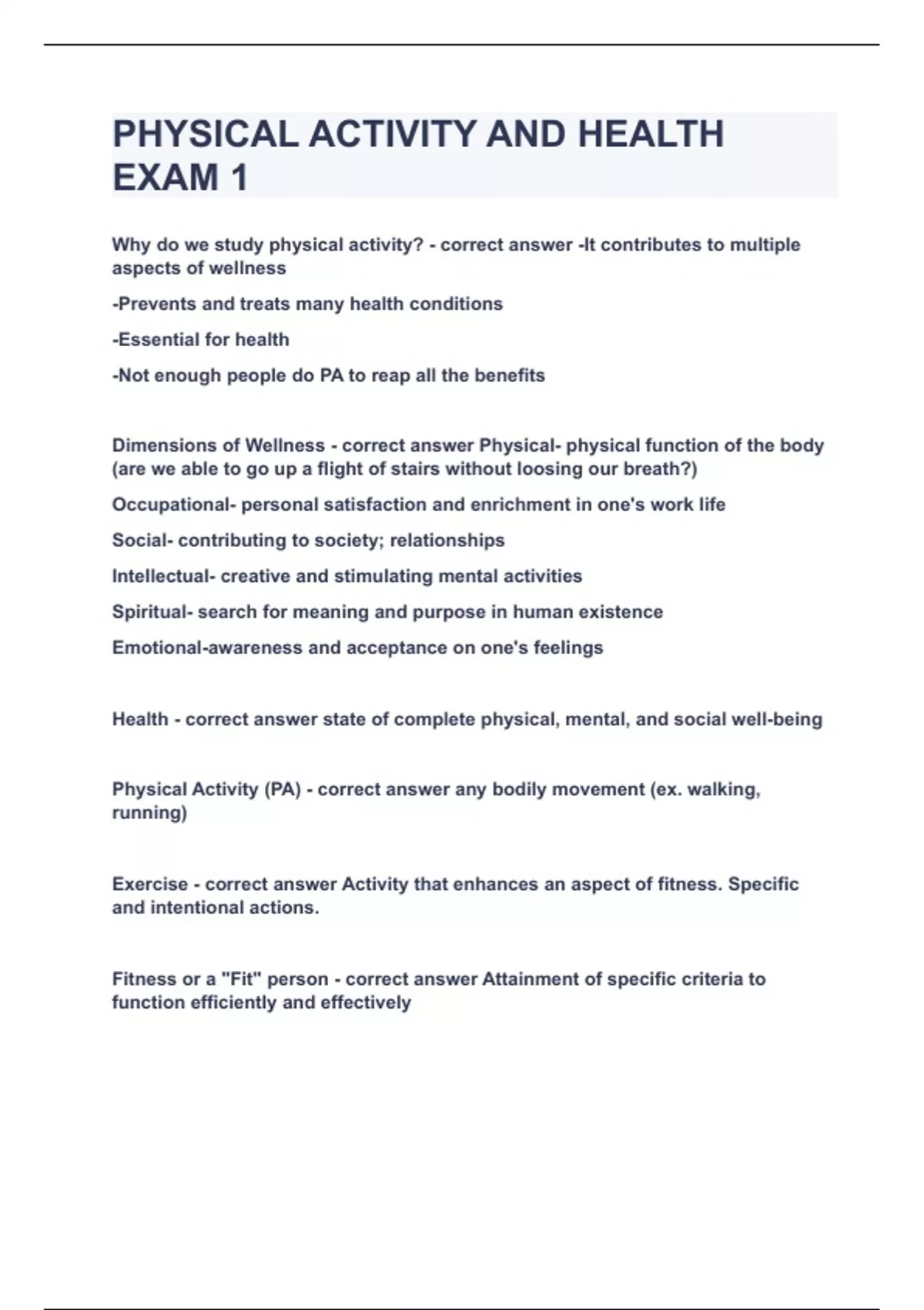 PHYSICAL ACTIVITY AND HEALTH EXAM 1|UPDATED&VERIFIED|100% SOLVED|GUARANTEED SUCCESS