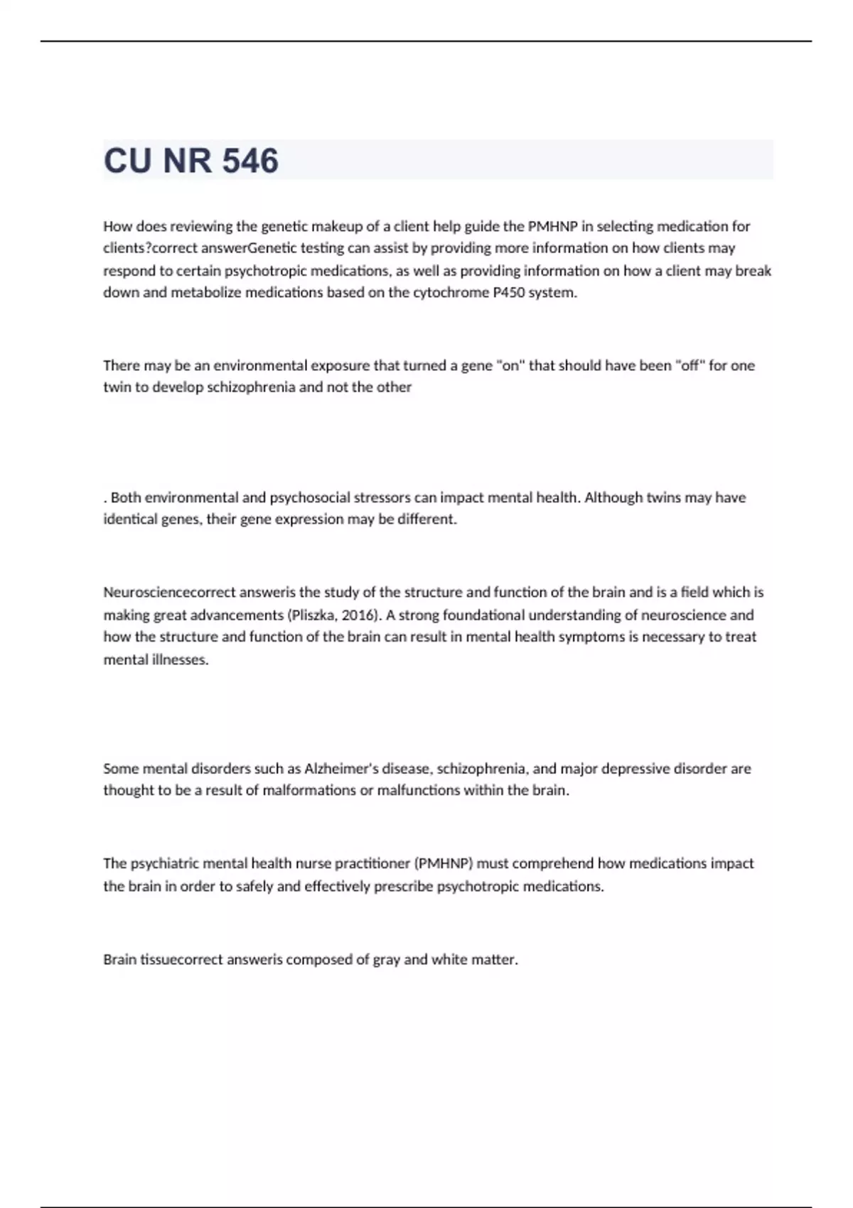 CU NR 546 questions with correct answers