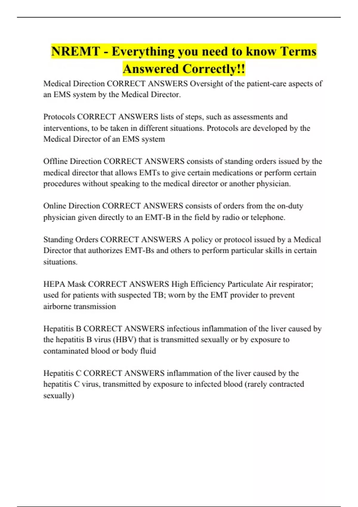 NREMT - Everything you need to know Terms Answered Correctly!!