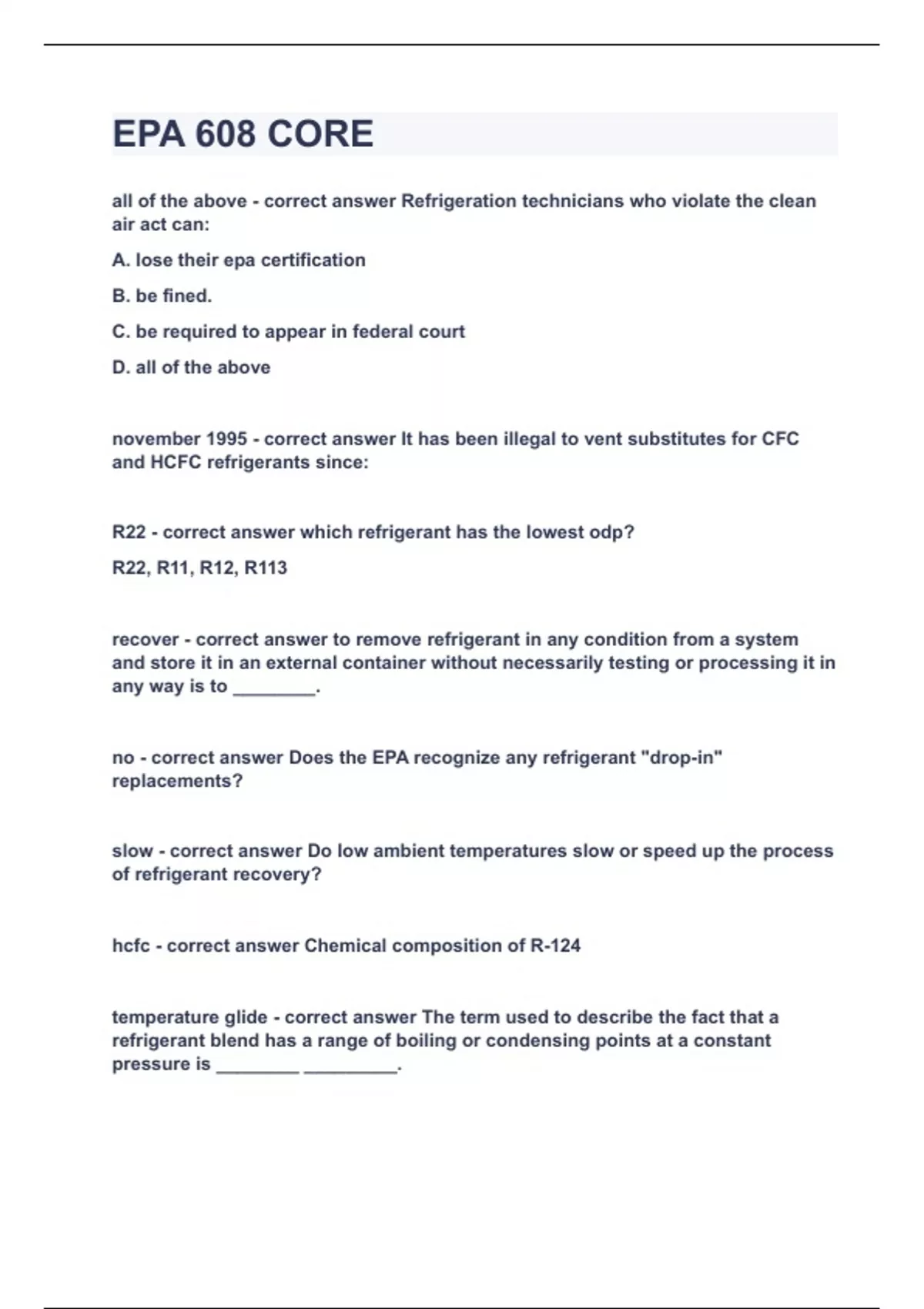 epa 608 core|updatedampverified|100 solved|guarante