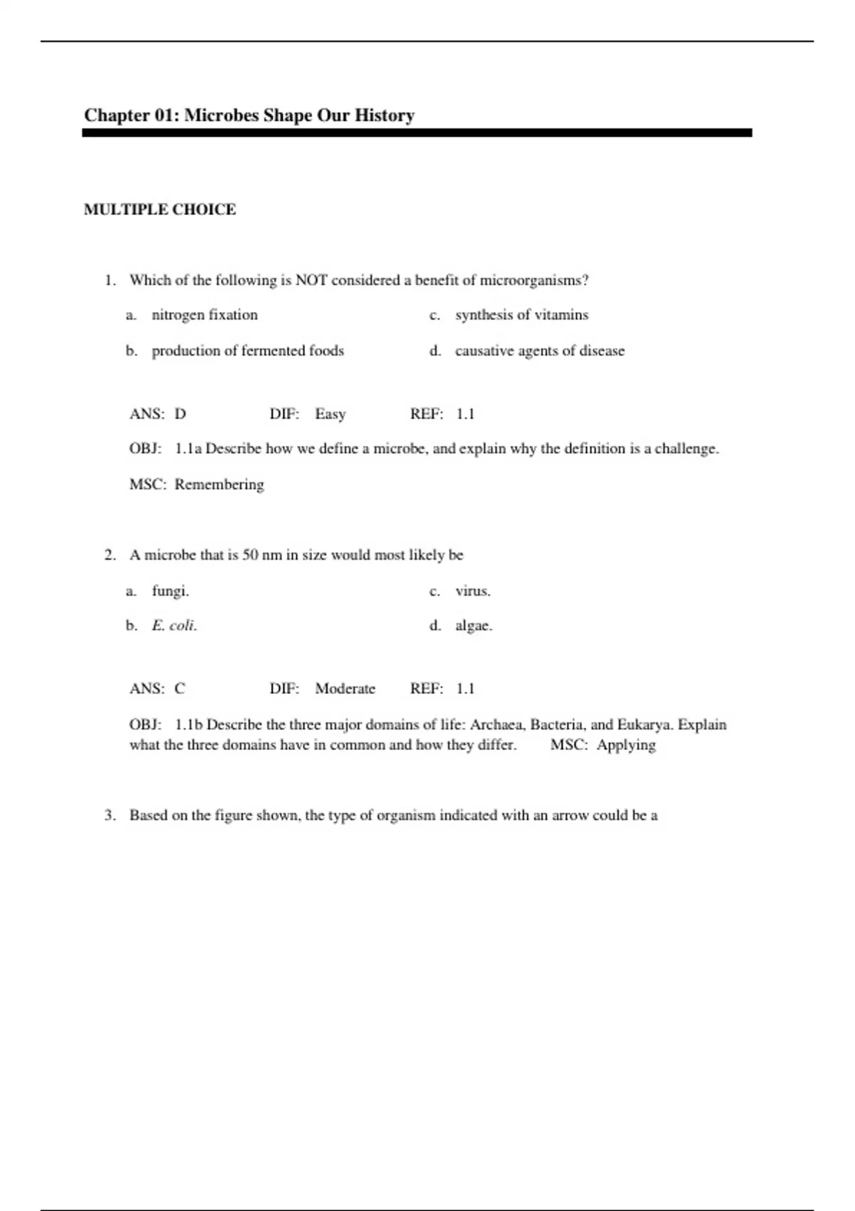 , OBJ: 1.1b Describe the three major domains of life: Archaea, Bacteria, and Eukarya. Explain