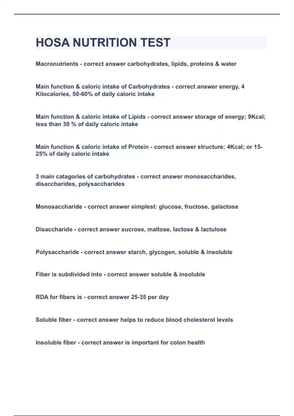 HOSA NUTRITION TEST|UPDATED&VERIFIED|100% SOLVED|GUARANTEED SUCCESS