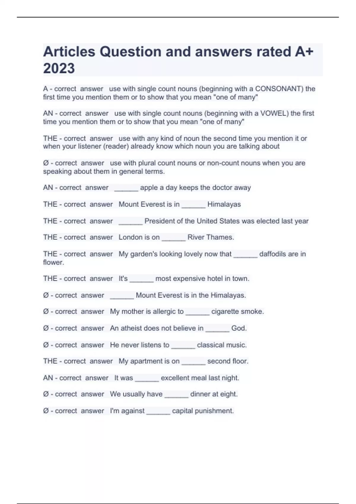 Articles Question and answers rated A+ 2023
