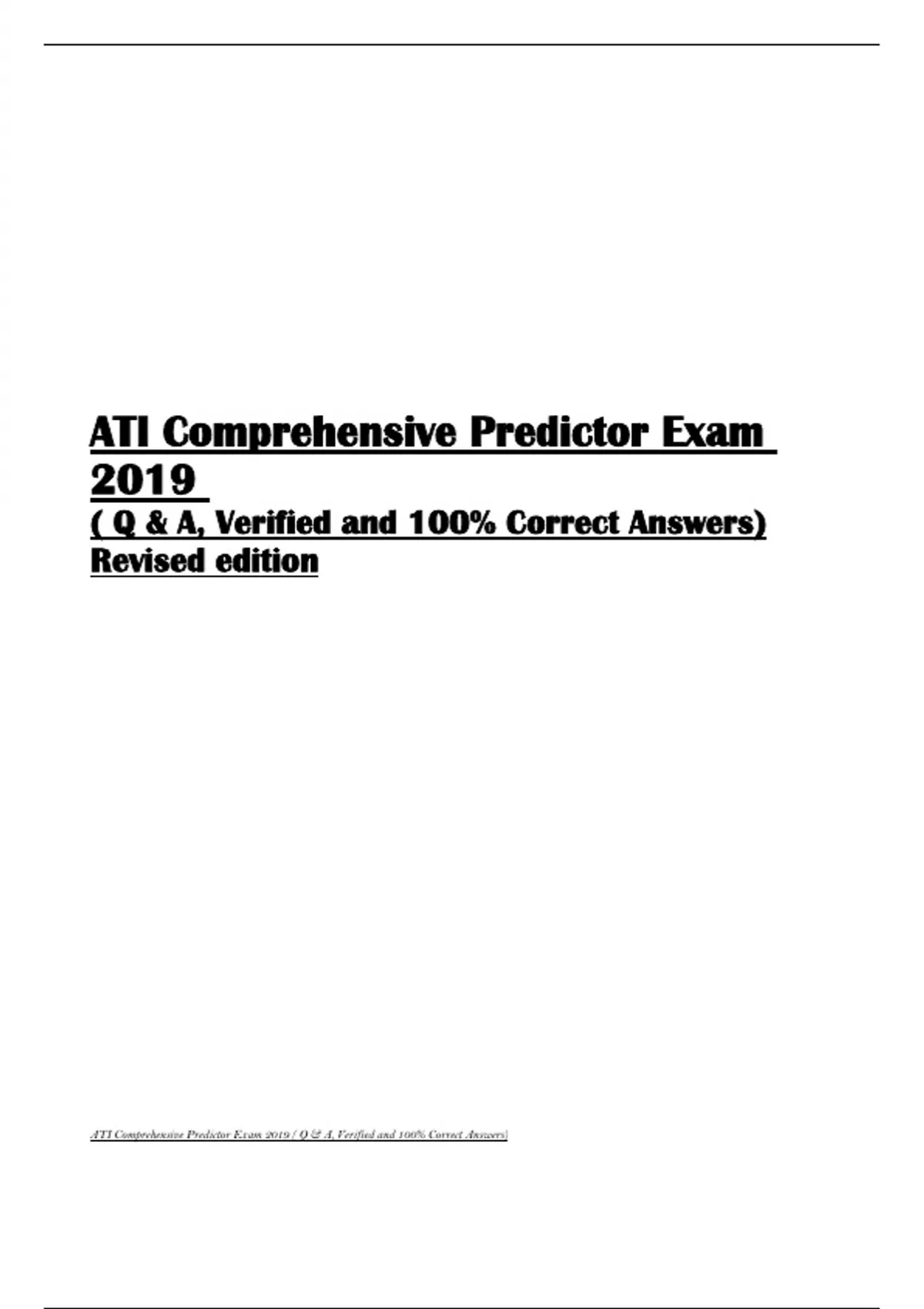 ATI Comprehensive Predictor Exam 2019 ( Q & A, Verified and 100% Correct Answers) Revised edition