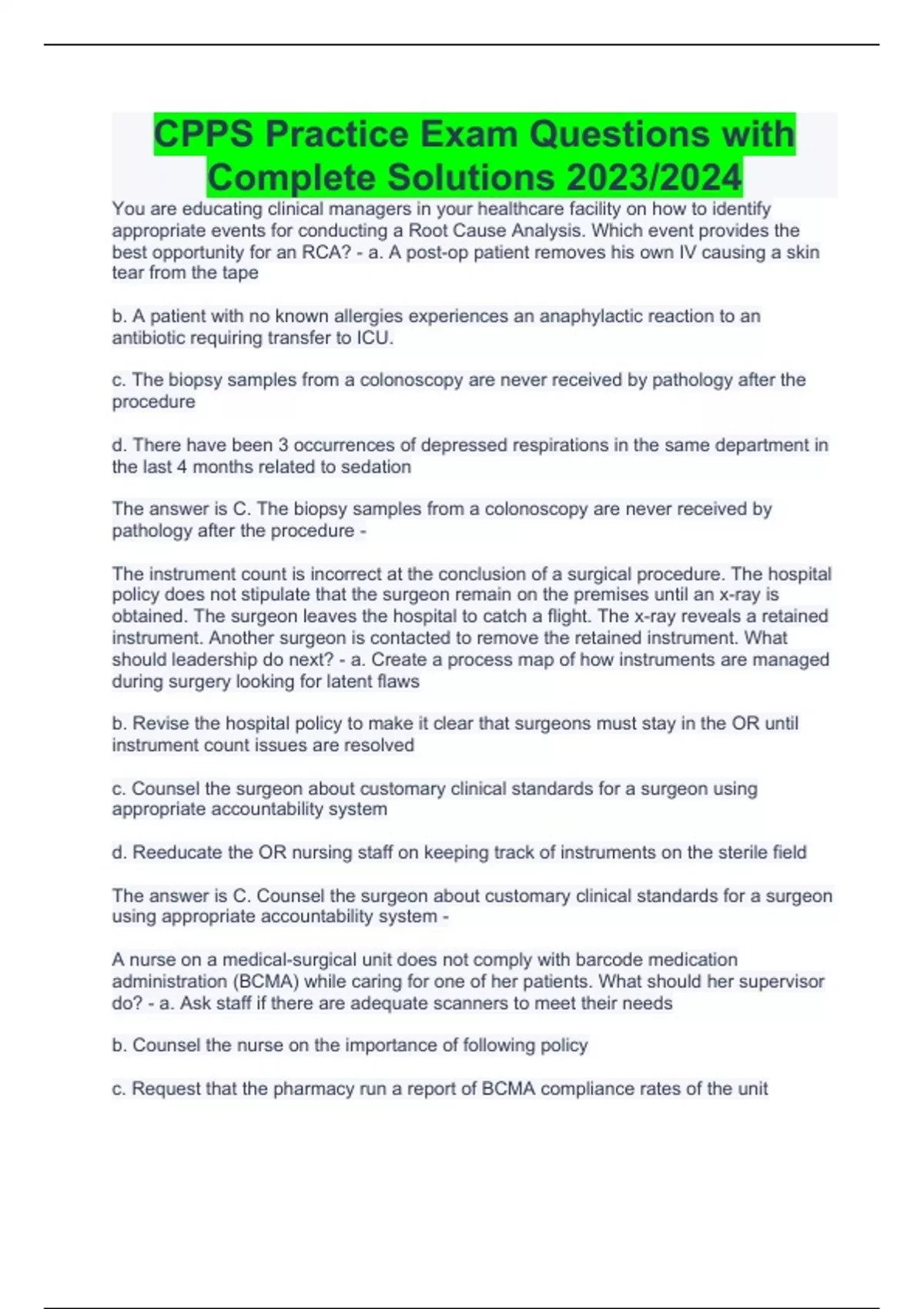 CPPS Practice Exam Questions with Complete Solutions 2023/2024