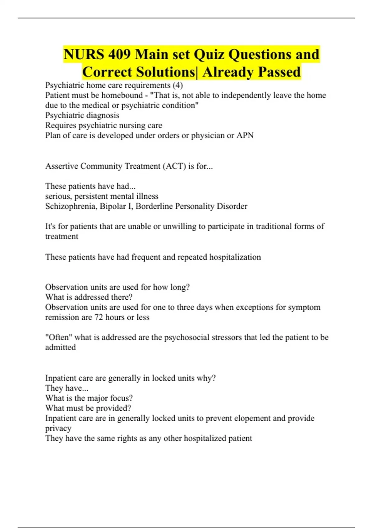 NURS 409 Main set Quiz Questions and Correct Solutions| Already Passed