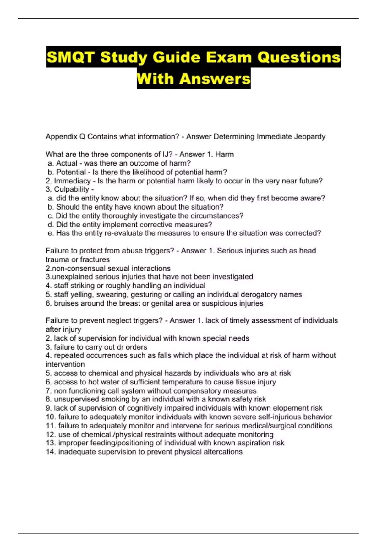 SMQT Study Guide Exam Questions With Answers...