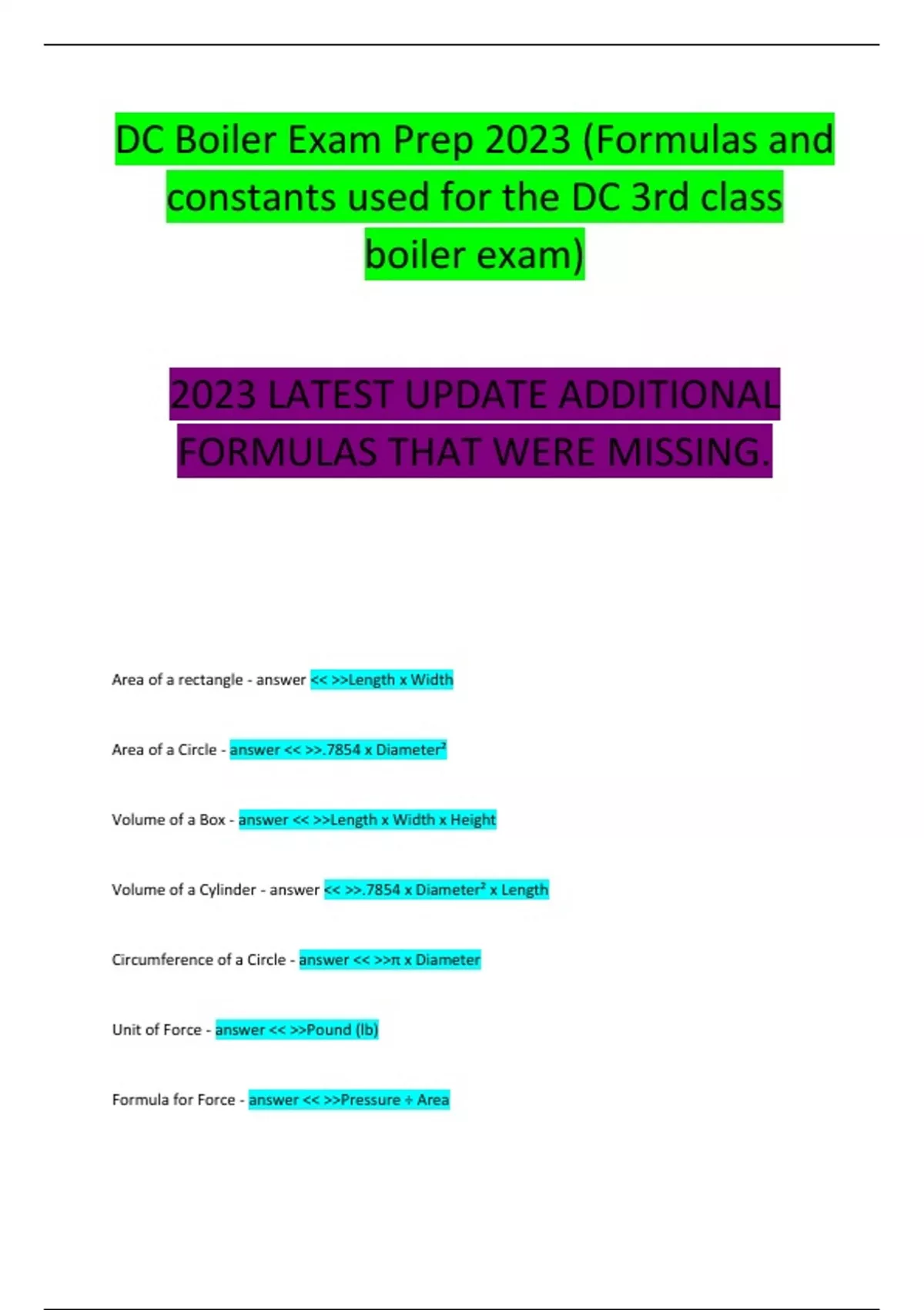 DC Boiler Exam Prep 2023 (Formulas and constants used for the DC 3rd class boiler exam) 2023 LATEST UPDATE ADDITIONAL FORMULAS THAT WERE MISSING.