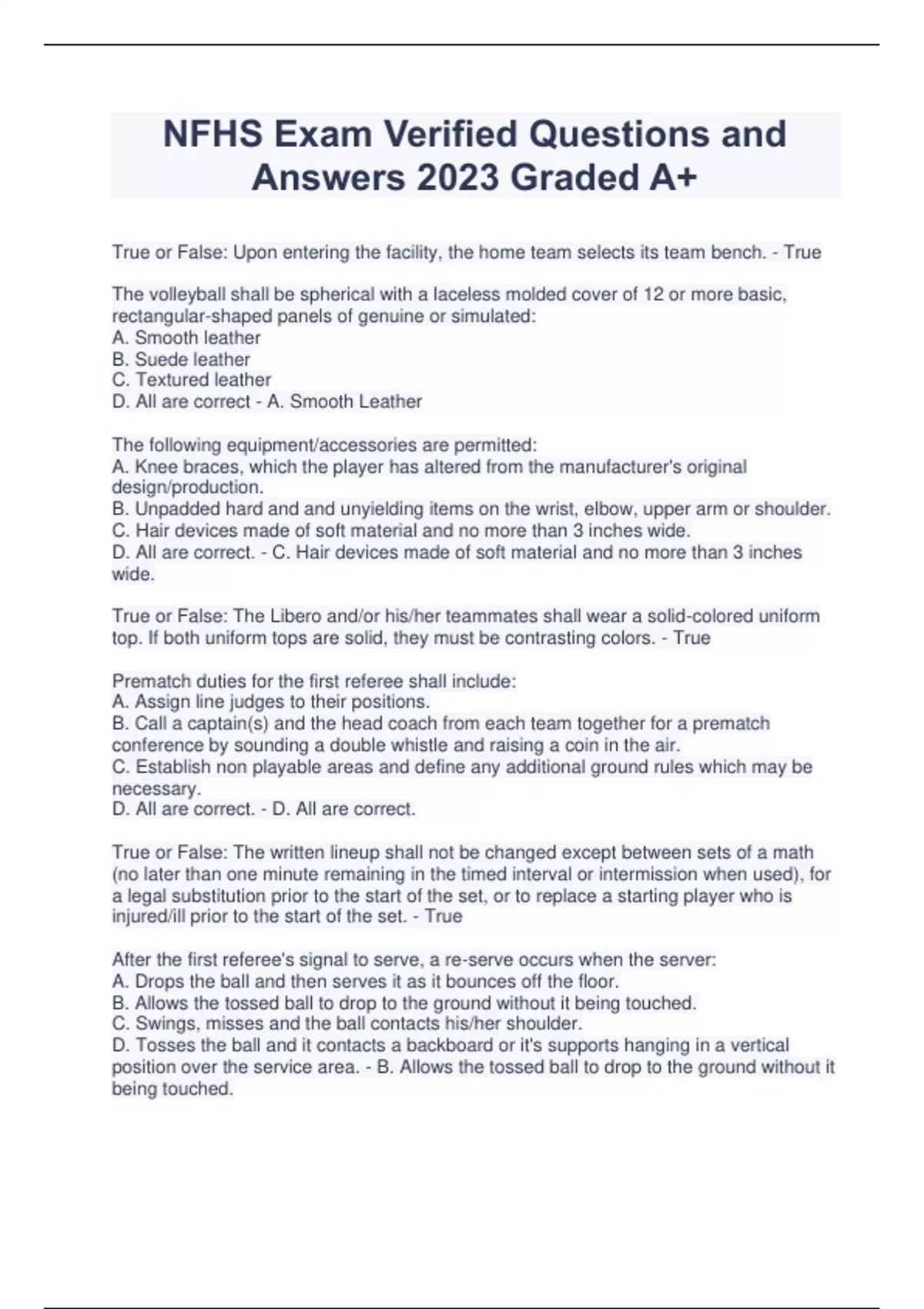 NFHS Exam Verified Questions and Answers 2023 Graded A+