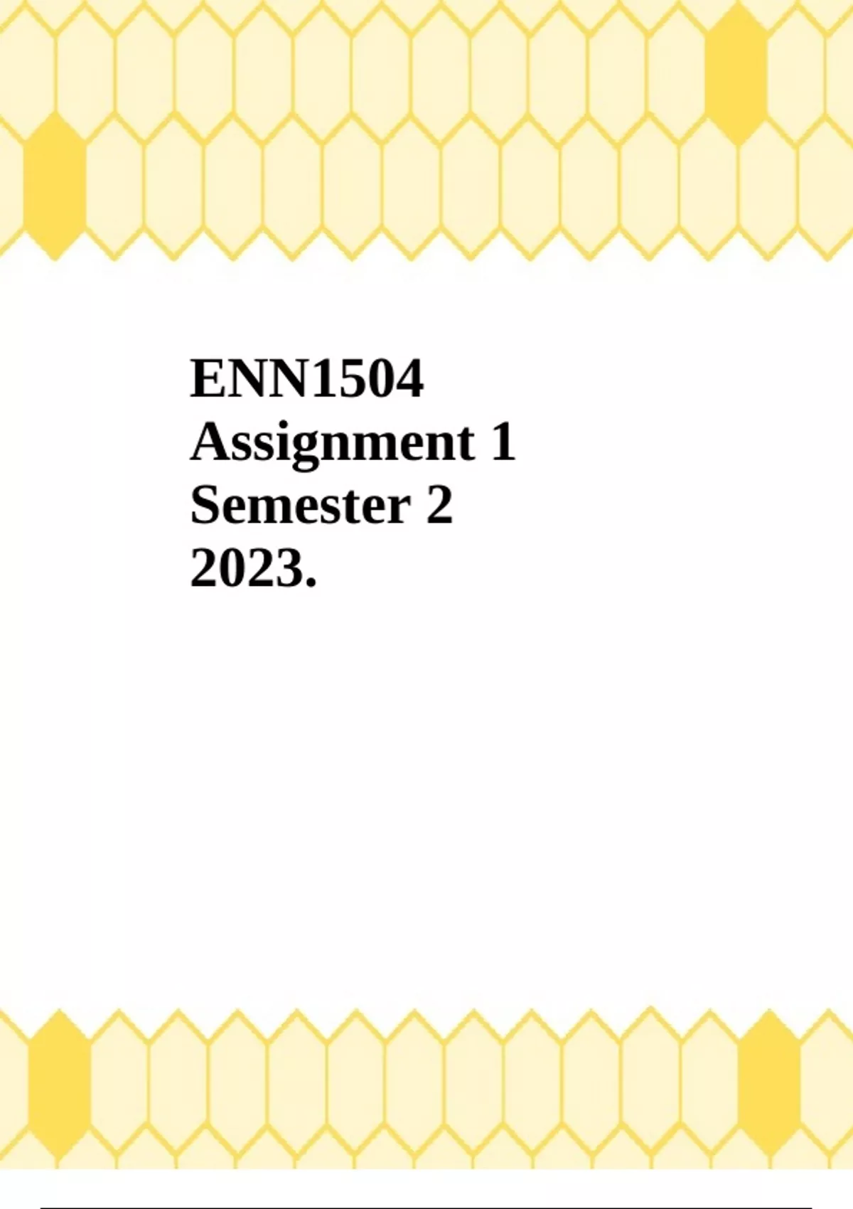ENN1504 Assignment 1 Semester 2 2023.Detailed working, solutions, memo, notes & explanations.
